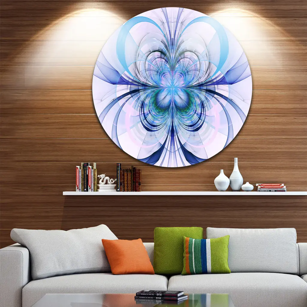 Bring Contemporary Abstraction to your home with this large Circle Metal wall art. This Turquoise Fractal Flower Pattern Metal Artwork makes it the focal point of any room or office. - White Gloss Coating ensures colors are extra vibrant with light reflection.- Aluminum grade Sheet Metal with 1 inch mounting frame on the back giving the illusion that the artwork is floating on the wall..- Mounting Brackets are included along with instructions.- High Quality Digital images are created directly into a glossy aluminum panel producing a stunning and captivating print into the glossy finish of the metal.- Water, Fire and Scratch resistant HD Aluminum panels.- Looks better than any photo paper and guaranteed to last at least 20 years- Easy to clean with a microfiber cloth. Colors are far superior to regular Canvas Art. - Easy to Hang