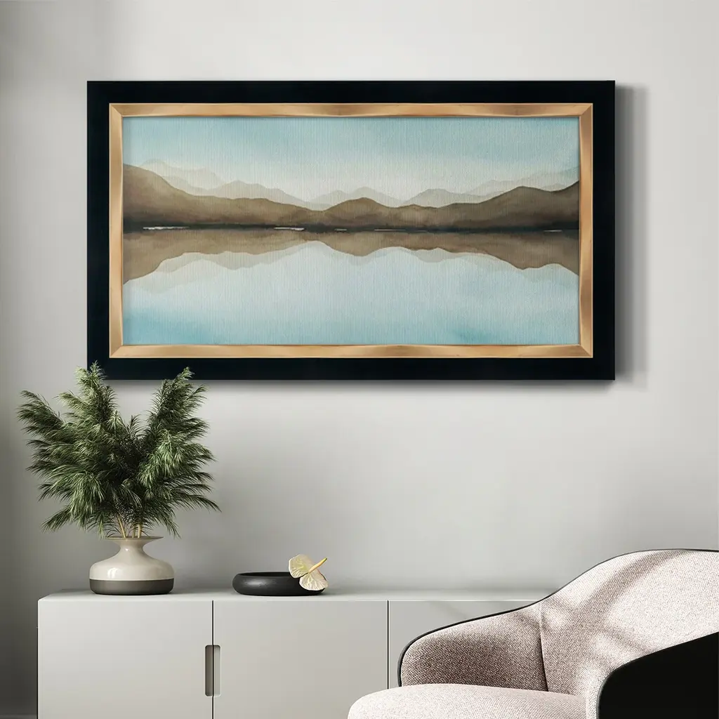 Turquoise Reflections III Premium Framed Canvas- Ready to Hang A Premium Framed Canvas created to last. Framed in distressed wood and available in an array of sizes and colors Featuring a beveled a solid wood stretcher bar, each piece comes ready to hand 3 SIZES AVAILABLE 21''X37'' - Overall Size 25''X45'' - Overall Size 29''x53'' - Overall Size Each piece is made to order. Each piece comes with hanging hardware. Made in the USA Ready to Hang Giclee Paper Print Acrylic Glass Beveled Matt Board