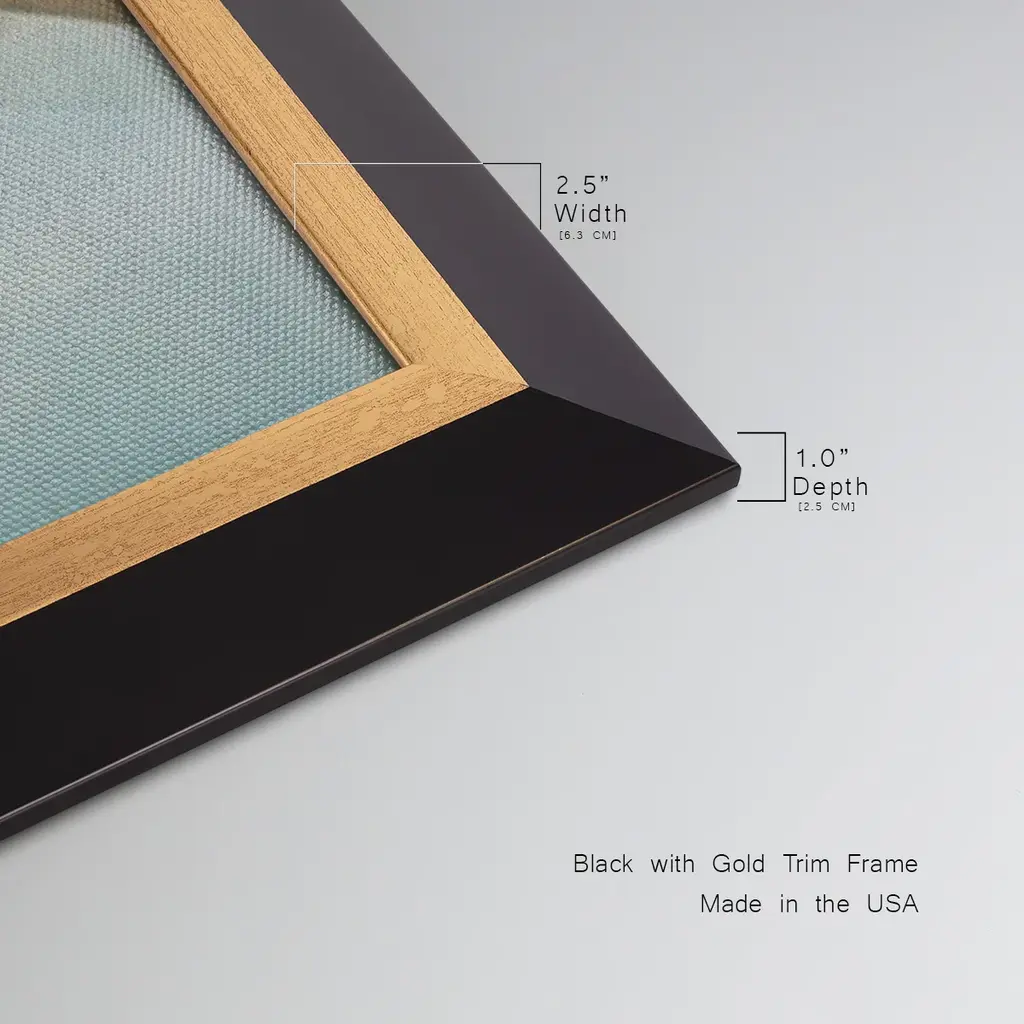 Turquoise Reflections III Premium Framed Canvas- Ready to Hang A Premium Framed Canvas created to last. Framed in distressed wood and available in an array of sizes and colors Featuring a beveled a solid wood stretcher bar, each piece comes ready to hand 3 SIZES AVAILABLE 21''X37'' - Overall Size 25''X45'' - Overall Size 29''x53'' - Overall Size Each piece is made to order. Each piece comes with hanging hardware. Made in the USA Ready to Hang Giclee Paper Print Acrylic Glass Beveled Matt Board