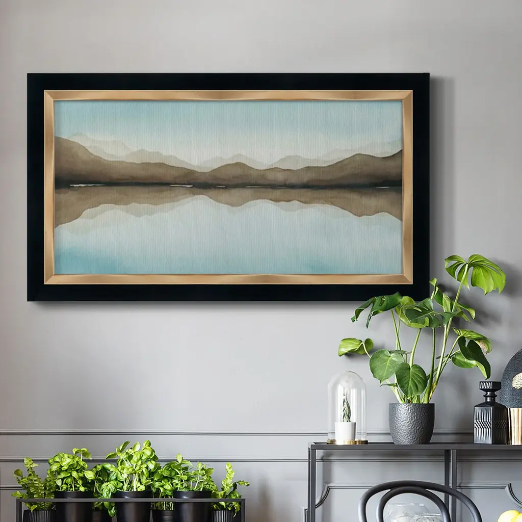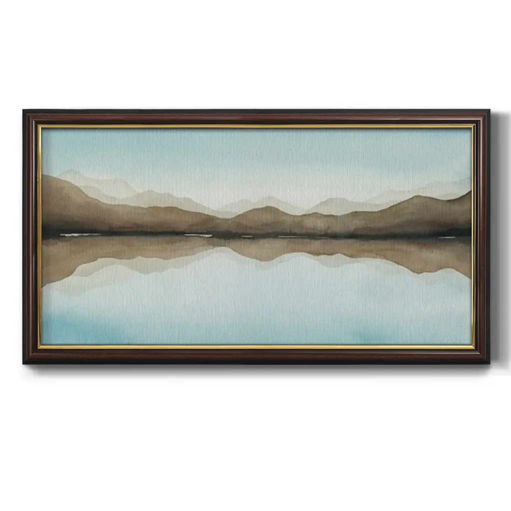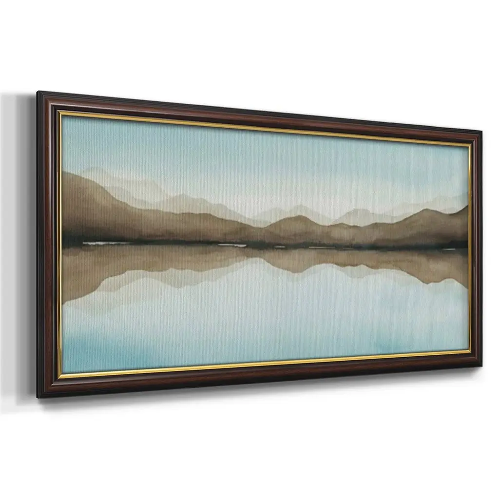 Turquoise Reflections III Premium Framed Canvas- Ready to Hang A Premium Framed Canvas created to last. Framed in distressed wood and available in an array of sizes and colors Featuring a beveled a solid wood stretcher bar, each piece comes ready to hand 3 SIZES AVAILABLE 21''X37'' - Overall Size 25''X45'' - Overall Size 29''x53'' - Overall Size Each piece is made to order. Each piece comes with hanging hardware. Made in the USA Ready to Hang Giclee Paper Print Acrylic Glass Beveled Matt Board