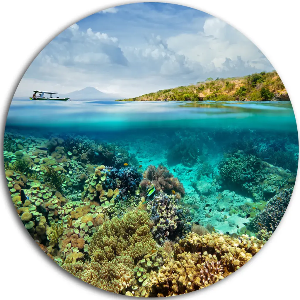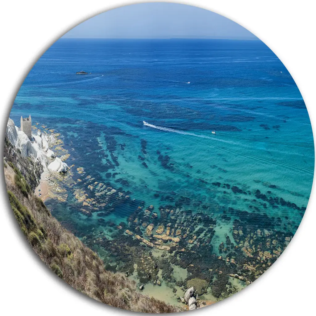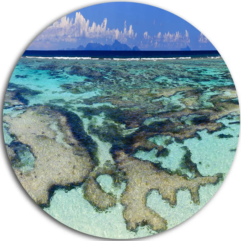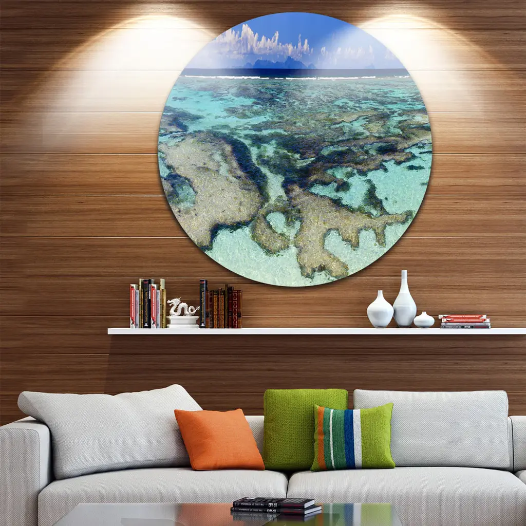 Turquoise Tropical Ocean Waters, Modern Seascape Round Wall Art, 23"