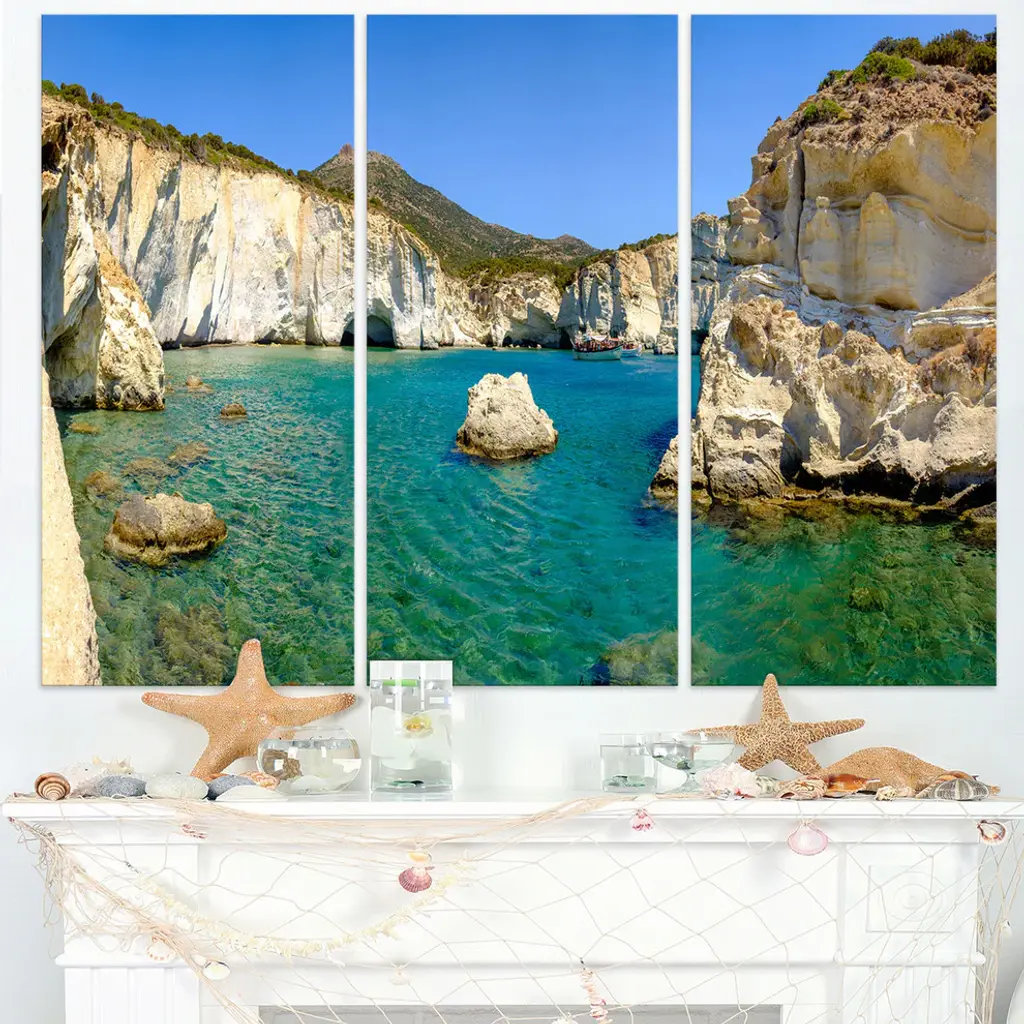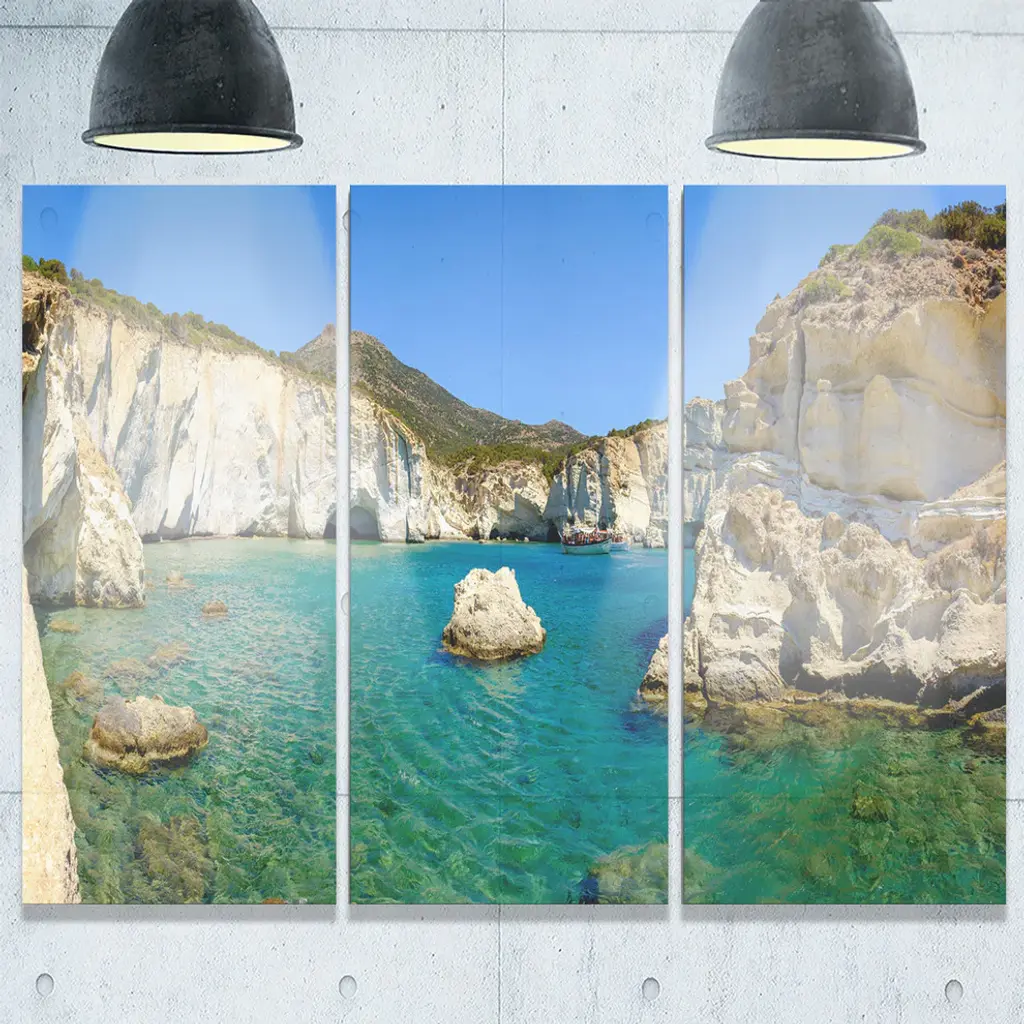 "Turquoise Water Beach Panorama" Metal Wall Art, 3 Panels, 36"x28"