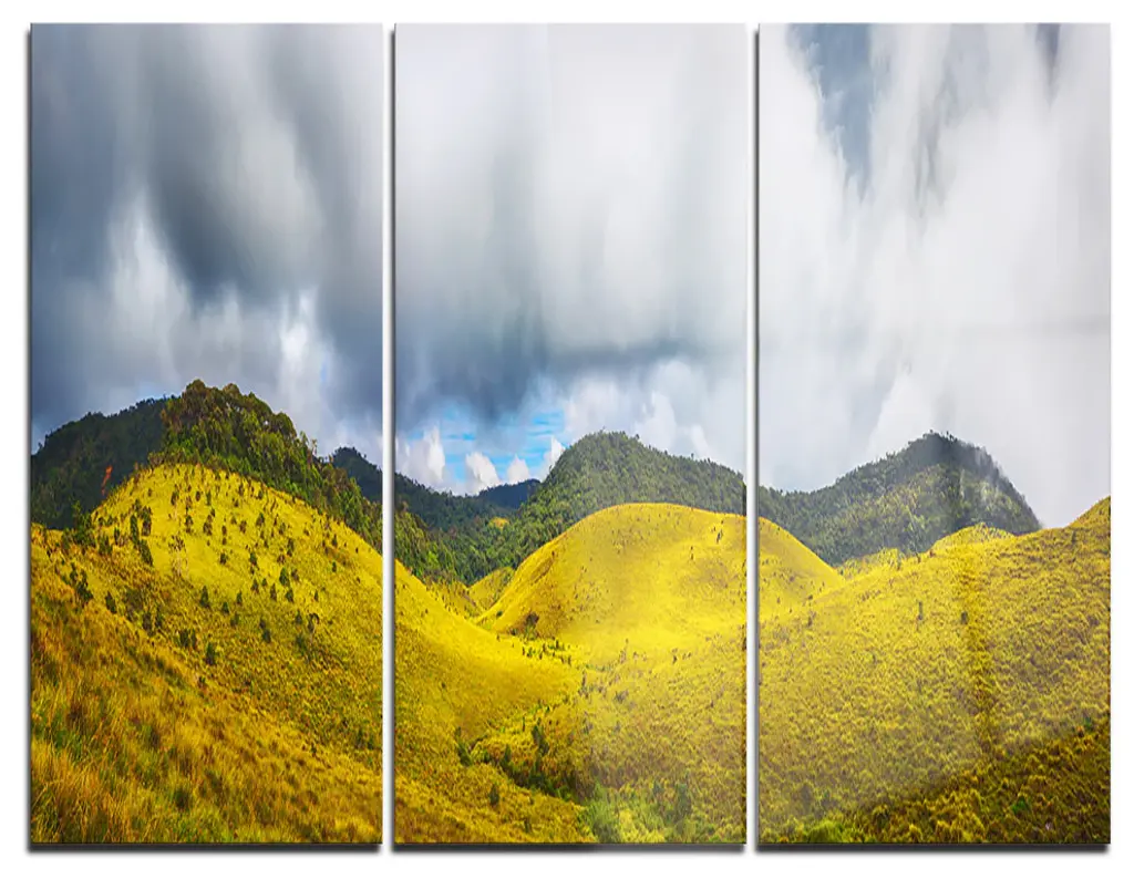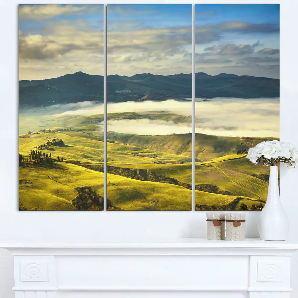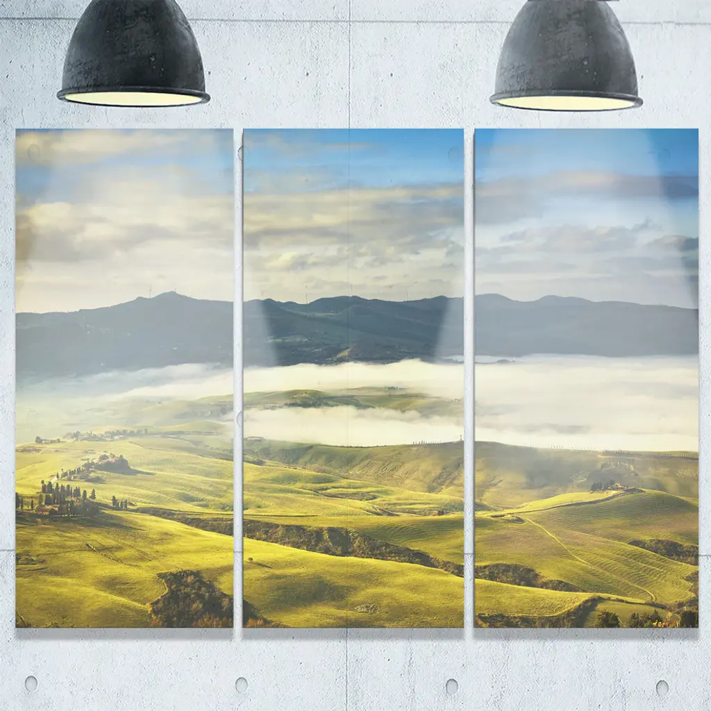 "Tuscany Farmland And Green Fields" Metal Wall Art, 3 Panels, 36"x28"