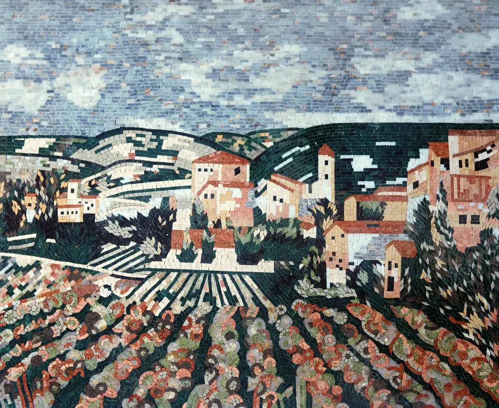 Transform your living space into a warm and inviting haven with our Tuscany-Inspired Mosaic Wall Art. This exquisite piece captures the essence of Italian charm through its stunning landscape design, reminiscent of the picturesque views found in the heart of Tuscany. Handcrafted with attention to detail, this mosaic features vibrant shades and hues that reflect the natural beauty of the countryside, bringing a touch of rustic elegance to your home.Imagine the breathtaking scenery of rolling hills, quaint villages, and lush vineyards adorning your walls. This artwork is not just a decoration; it is a statement piece that tells a story and ignites the spirit of Italian living. Perfectly suited for a range of settings, the Tuscany-Inspired Mosaic Wall Art makes a stunning focal point in your living room or can add a touch of sophistication to your kitchen. Whether you display it above your kitchen counter as a unique backsplash or as an eye-catching feature in your dining area, this mosaic mural brings warmth and character to any space. It is especially ideal for fall and winter, as its rich colors resonate with the inviting atmosphere of the season. Crafted with love and precision, this handmade mosaic is built to last, ensuring that your investment not only enhances the beauty of your home but also stands the test of time. Add a touch of Italian flair to your decor and celebrate the artistry of mosaic design with our Tuscany-Inspired Wall Art. Elevate your interior aesthetic and create a cozy, stylish environment that reflects your passion for art, culture, and exceptional craftsmanship.