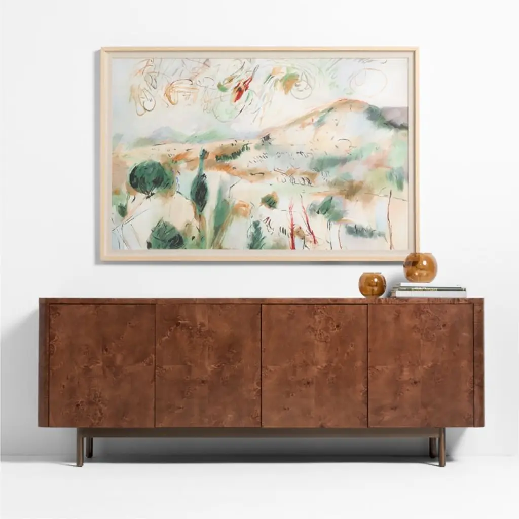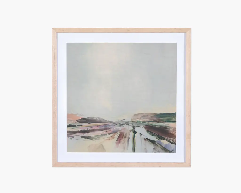 The rolling Tuscan countryside comes alive with expressive color and dynamic mark making. The green foliage, brown earth and swirling clouds of the original painting are masterfully reproduced in our giclee print on watercolor paper. The print is presented under clear acrylic with a linen mat and oak-finished wood frame.