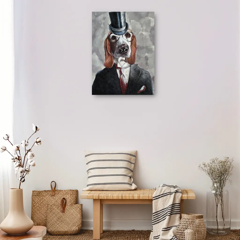 Tuxedo Dog III By Dixon Design Group is produced with printing that covers the entirety of the canvas for a sleek and stylish museum-quality look. Our framed prints are made by expert craftsmen who strive to make each canvas the masterpiece that your home deserves. Each of our framed canvas art prints is hand-crafted and made-to-order to give it a high quality and professional appearance. To ensure the clearest, most accurate depiction of the artists' original vision, we print each work of art on bright white polyester canvas, ensuring the most vivid display and precise details. Please note: colors may differ slightly due to variation in monitors. READY TO HANG - Our canvas prints come with preinstalled D-rings attached to the back of the product to make hanging and displaying your new masterpiece a breeze.