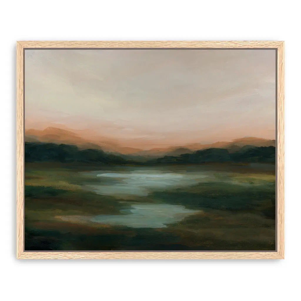 Transform your space with this mesmerizing green abstract moody landscape "Twilight" canvas art by Haley Knighten. Featuring deep green tones and dynamic compositions, this artwork evokes a sense of mystery and tranquility. The rich colors and captivating design create an atmosphere of sophistication and elegance, making it an ideal statement piece for both contemporary and classic interiors. Available in black frame, dark walnut frame, oak frame, or as a wrapped canvas. Our Gallery Wrap Canvas Prints are proudly assembled with high quality materials in California, USA. Each piece is printed on a thick, archival grade canvas using Giclee technology. It is then hand-stretched by our experienced artisans over solid wood bars, which will not warp over time. The final product is a piece personally crafted for you to confidently display on your wall. Care and Assembly: Ensure that the location of your piece has little to no exposure to heat, sunlight, and moisture. Wipe clean, only if needed. Each piece includes a sawtooth hanger to hang on your wall horizontally.