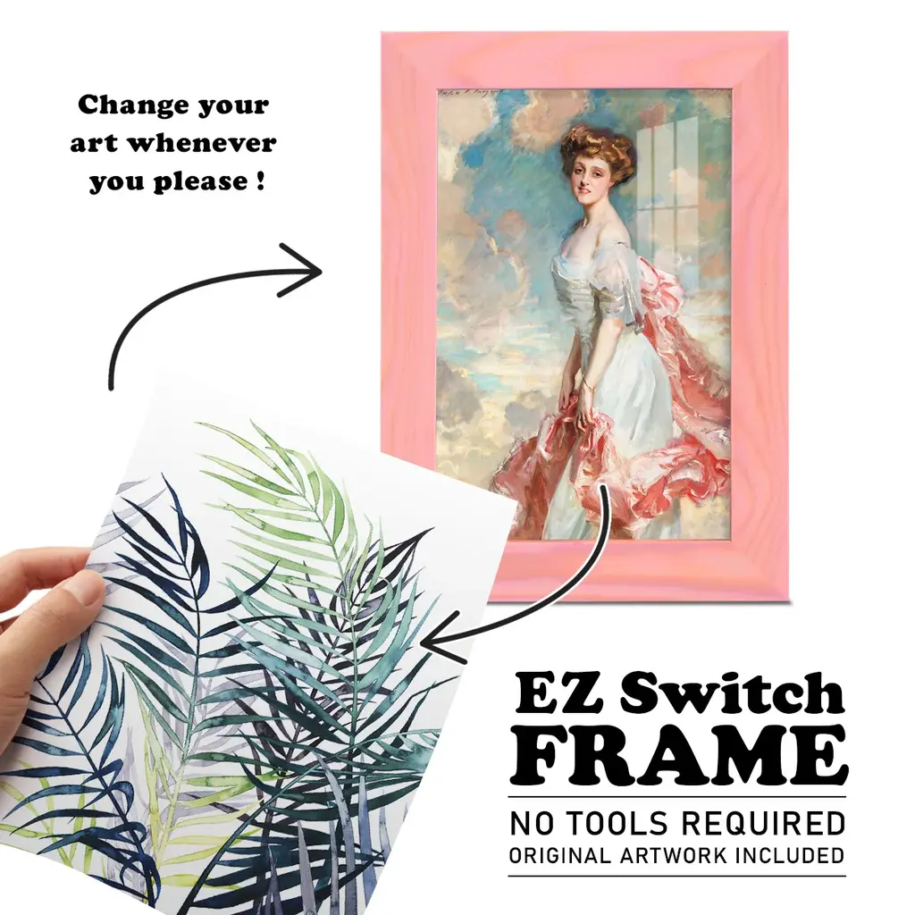 Twilight Palms I -EZ SWITCH Framed Print w/glass-Cherry Red A delightful, framed print. Featuring a solid wood frame with real wood glass. This premium print is giclee quality. In addition, every frame features a removable back and table top stand. This allows you to change your art in the future or to just stand the art on a table for a new look. We are sure you'll enjoy our new series of EZ SWITCH Framed Art. Solid Wood Frame Real Glass Removable / Replaceable Art Built in Tabletop Stand Sizes range from 4x6 up to 12x15 - buy just one or pair them up as sets as you see fit.