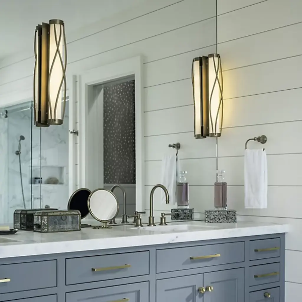 Hand tapered vines encasing a glass tube with a light source makes the Twine Vanity Light a simple lighting addition with added organic forms. Mounting either horizontally or vertically, the illumination is beautifully diffused through the opaque glass.