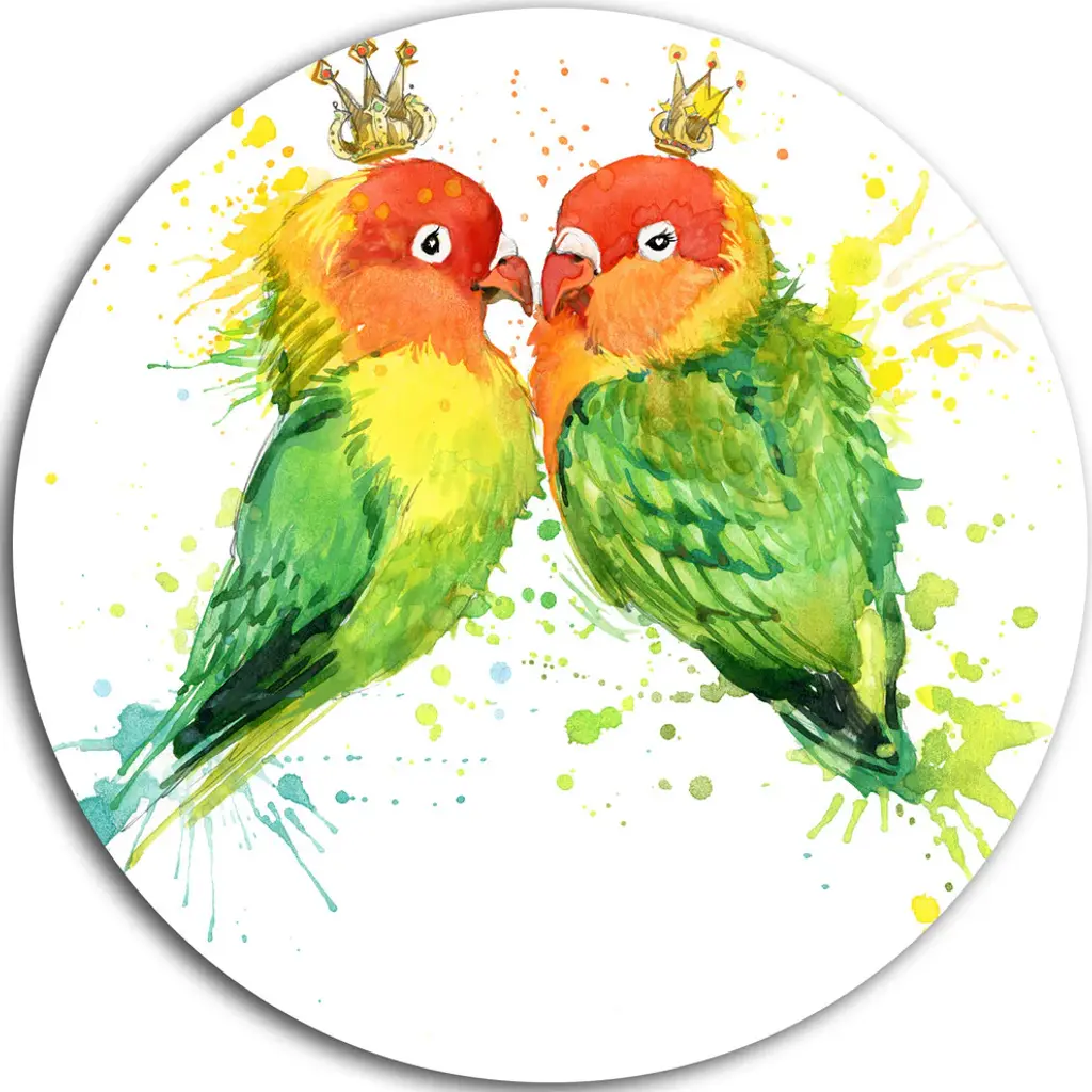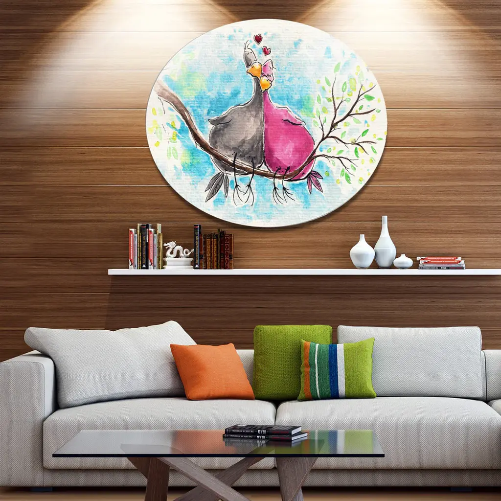 Two Birds In Love On Branch, Animal Large Disc Metal Wall Art, 23"