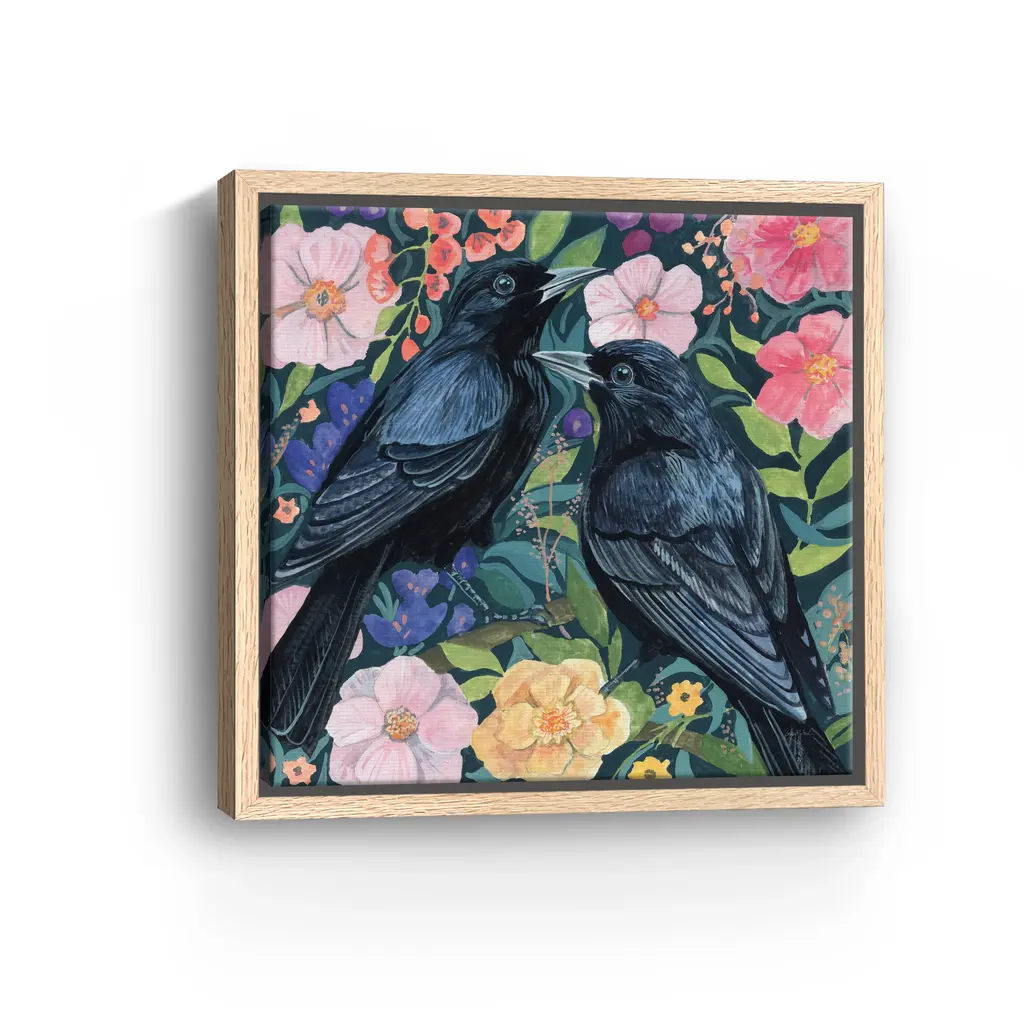 Two Crows On Flowers Canvas Giclee - Wrapped Canvas / None / 20x20