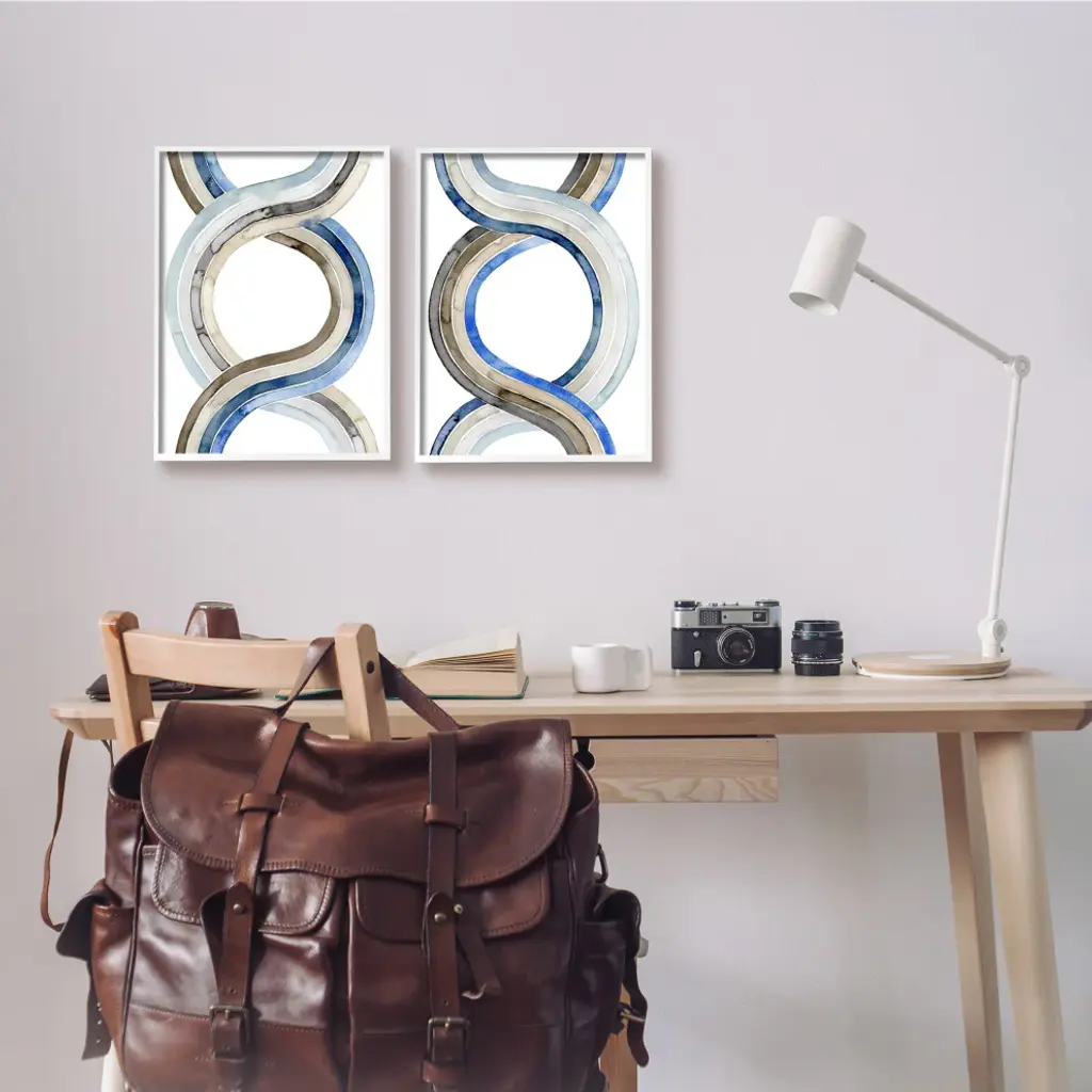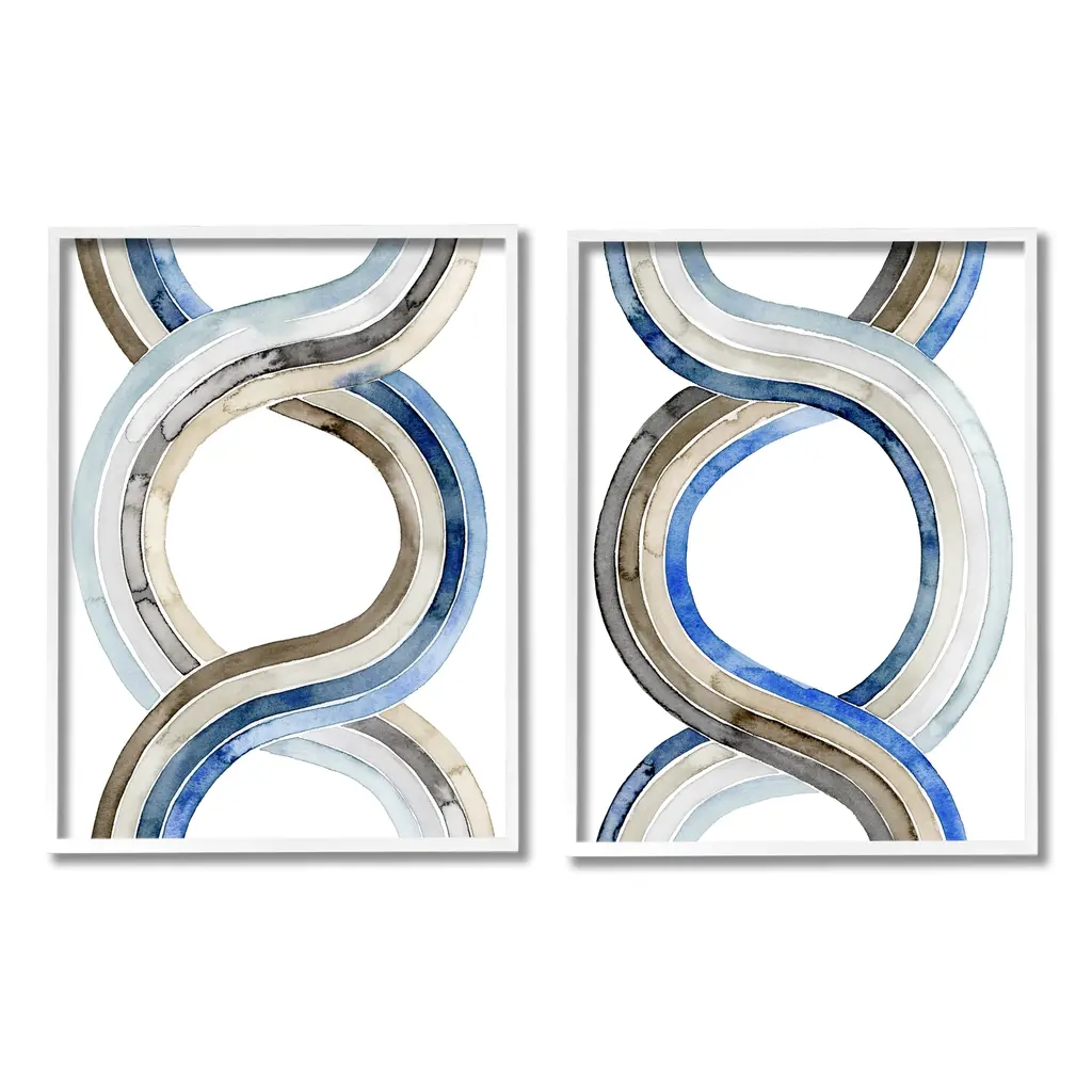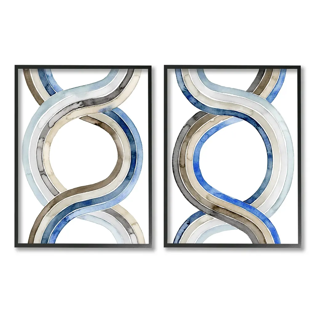 Two Dimensional Spiral Helix Brown Blue Abstract Lines,2pc, Each 11 X 14