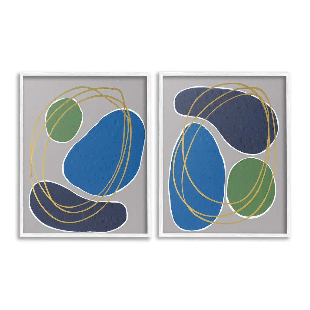 Two Dimensional Spiral Helix Brown Blue Abstract Lines,2pc, Each 24 X 30