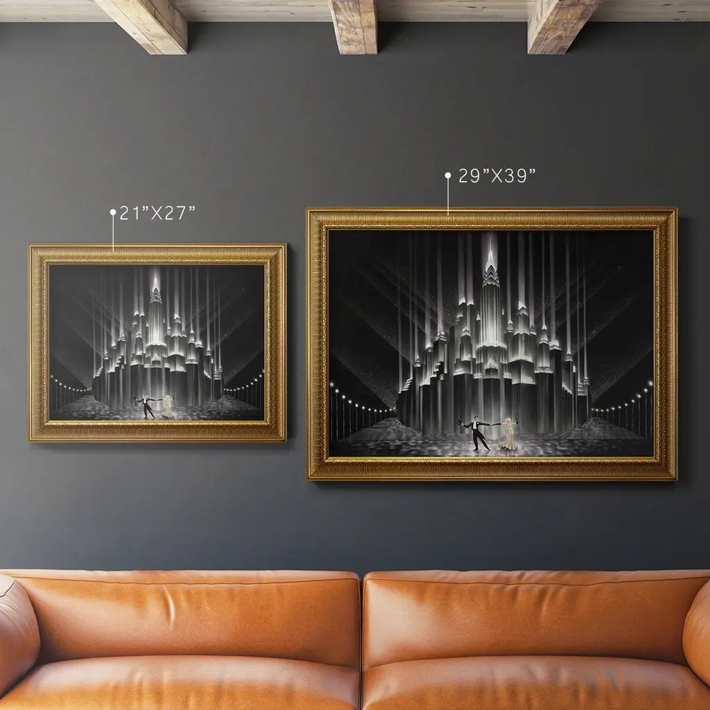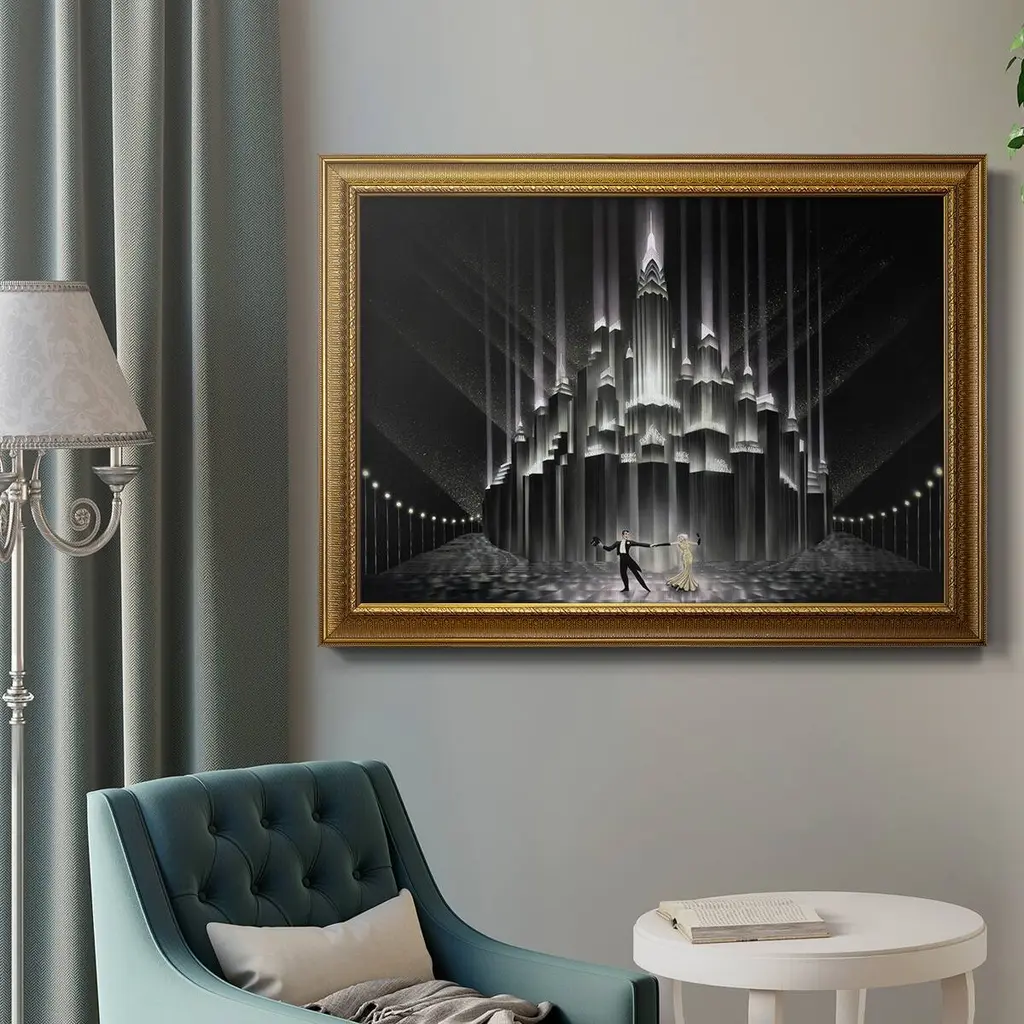Two for Tonight Premium Framed Canvas- Ready to Hang A Premium Framed Canvas created to last. Framed in distressed wood and available in an array of sizes and colors Featuring a beveled a solid wood stretcher bar, each piece comes ready to hand 3 SIZES AVAILABLE 16''X20'' - Overall Size 18'X27'' - Overall Size 24''x36'' - Overall Size Each piece is made to order. Each piece comes with hanging hardware. Made in the USA Ready to Hang Giclee Paper Print Acrylic Glass Beveled Matt Board