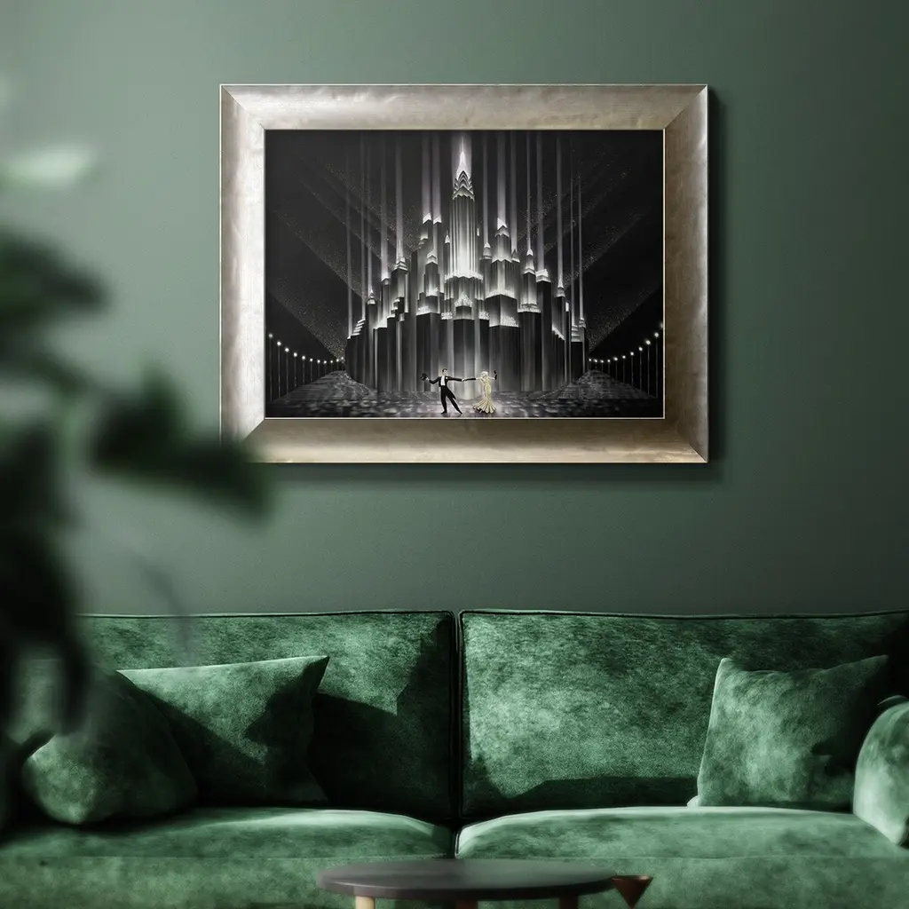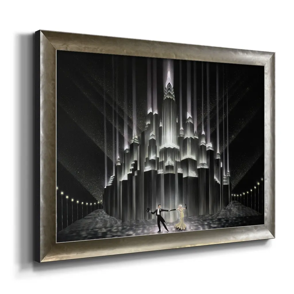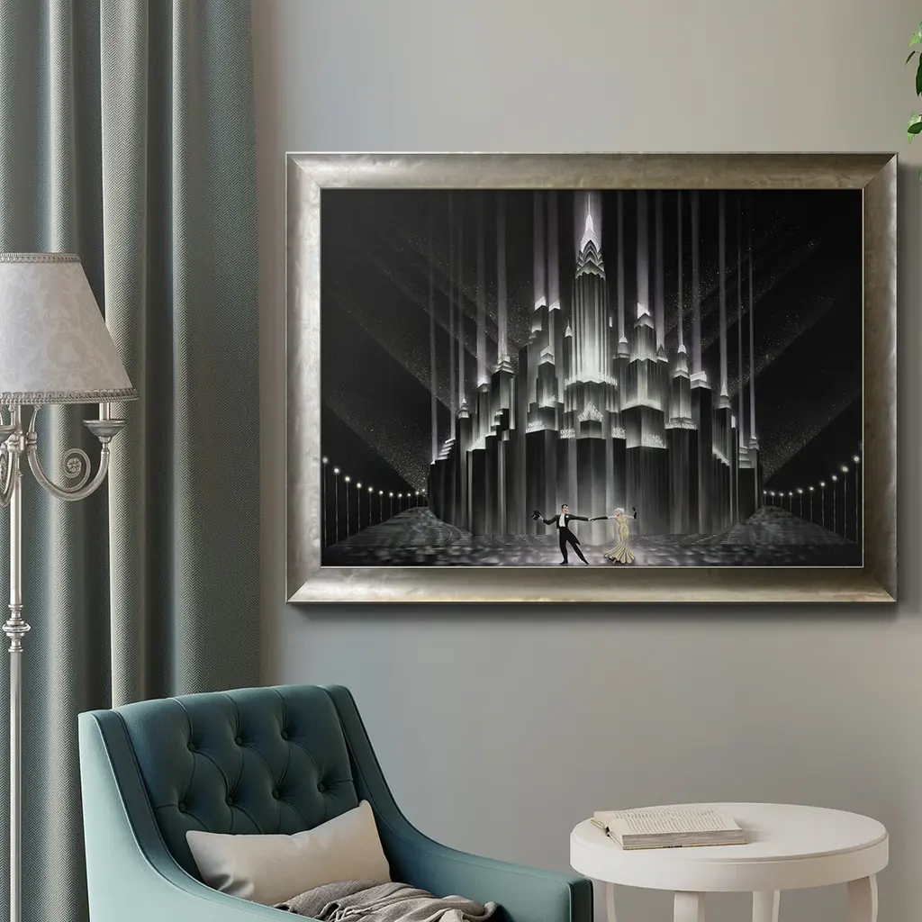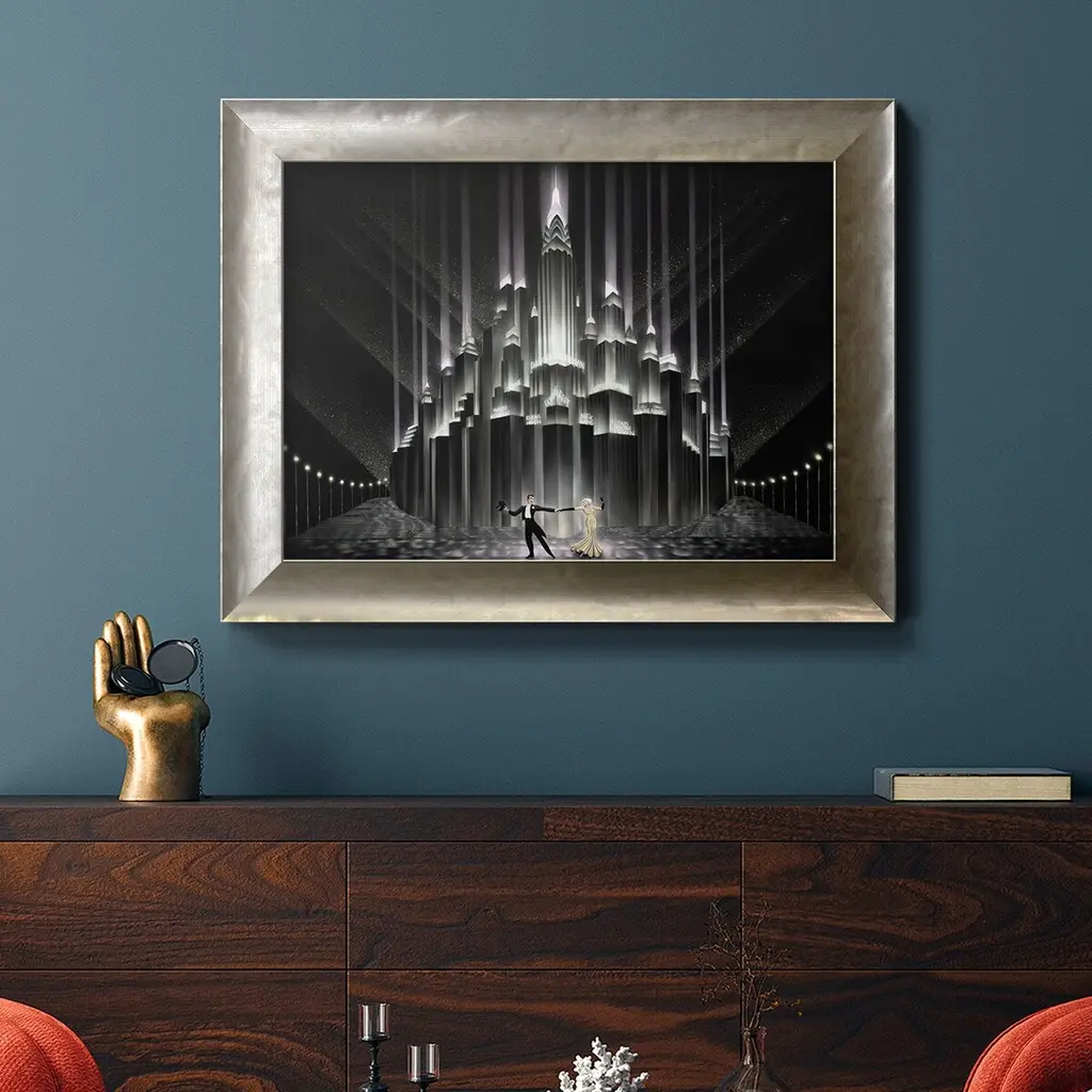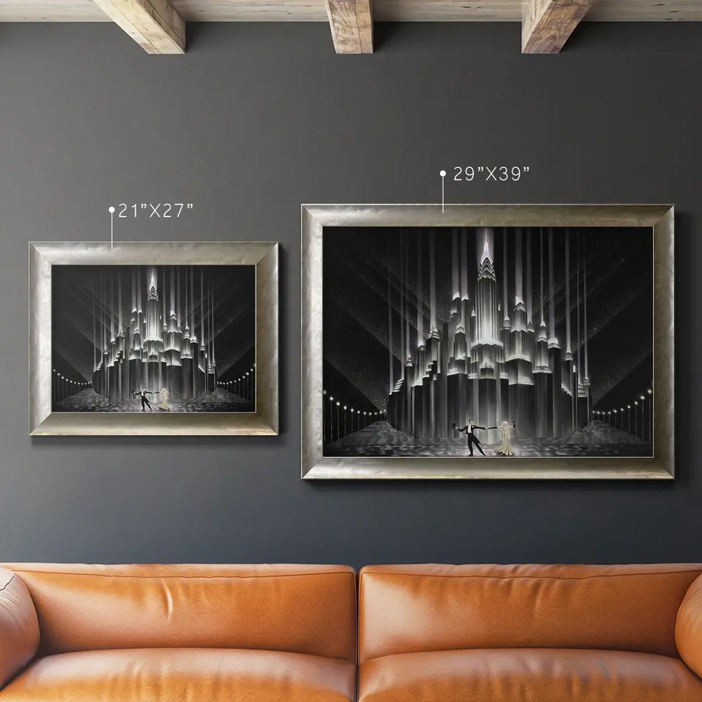 Two for Tonight Premium Framed Canvas- Ready to Hang A Premium Framed Canvas created to last. Framed in distressed wood and available in an array of sizes and colors Featuring a beveled a solid wood stretcher bar, each piece comes ready to hand 3 SIZES AVAILABLE 16''X20'' - Overall Size 18'X27'' - Overall Size 24''x36'' - Overall Size Each piece is made to order. Each piece comes with hanging hardware. Made in the USA Ready to Hang Giclee Paper Print Acrylic Glass Beveled Matt Board