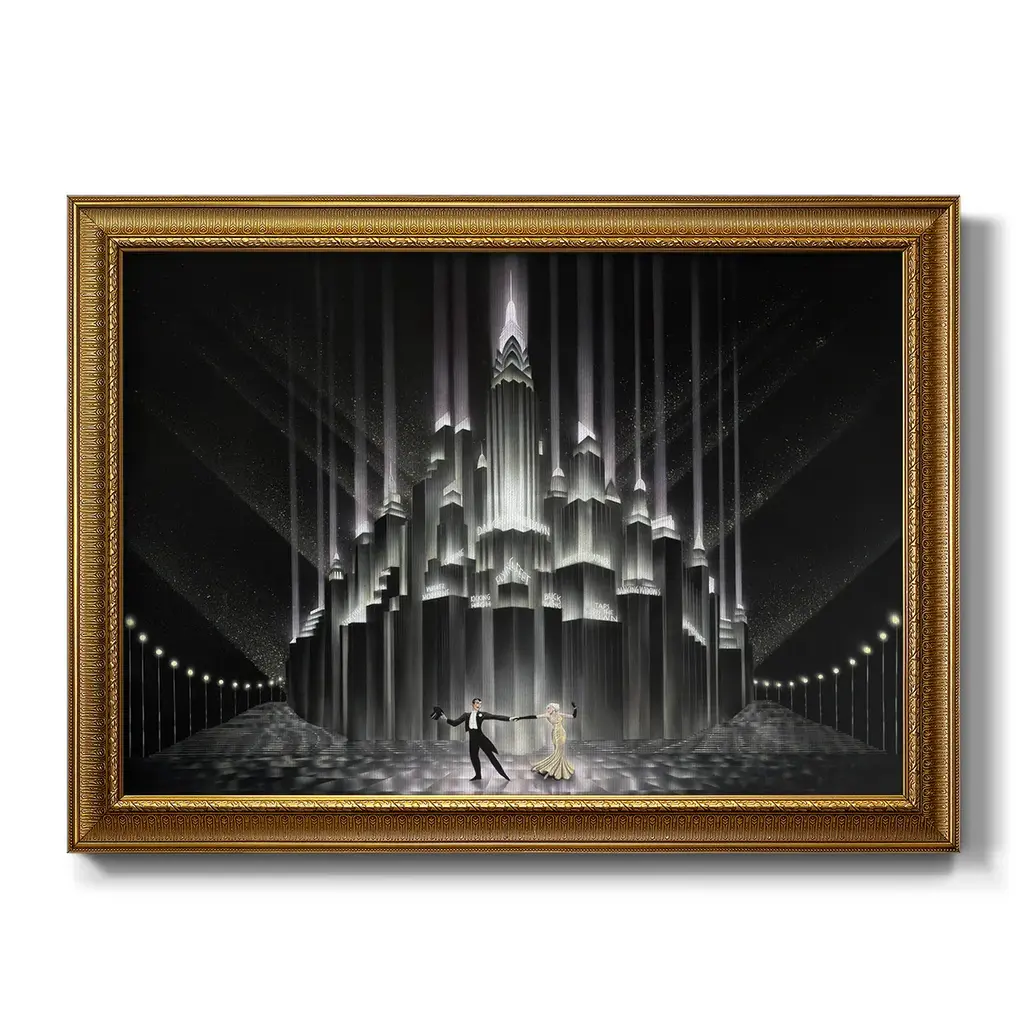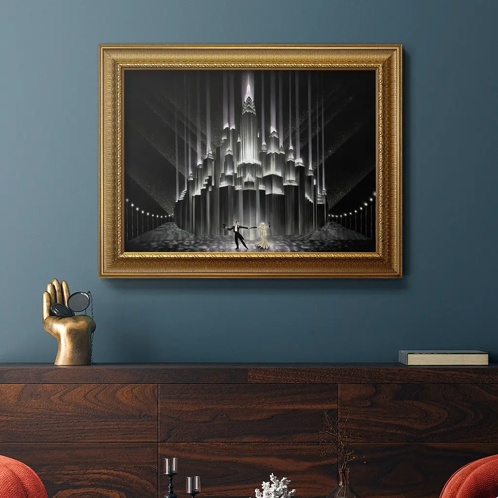 Two for Tonight Premium Framed Canvas- Ready to Hang A Premium Framed Canvas created to last. Framed in distressed wood and available in an array of sizes and colors Featuring a beveled a solid wood stretcher bar, each piece comes ready to hand 3 SIZES AVAILABLE 16''X20'' - Overall Size 18'X27'' - Overall Size 24''x36'' - Overall Size Each piece is made to order. Each piece comes with hanging hardware. Made in the USA Ready to Hang Giclee Paper Print Acrylic Glass Beveled Matt Board