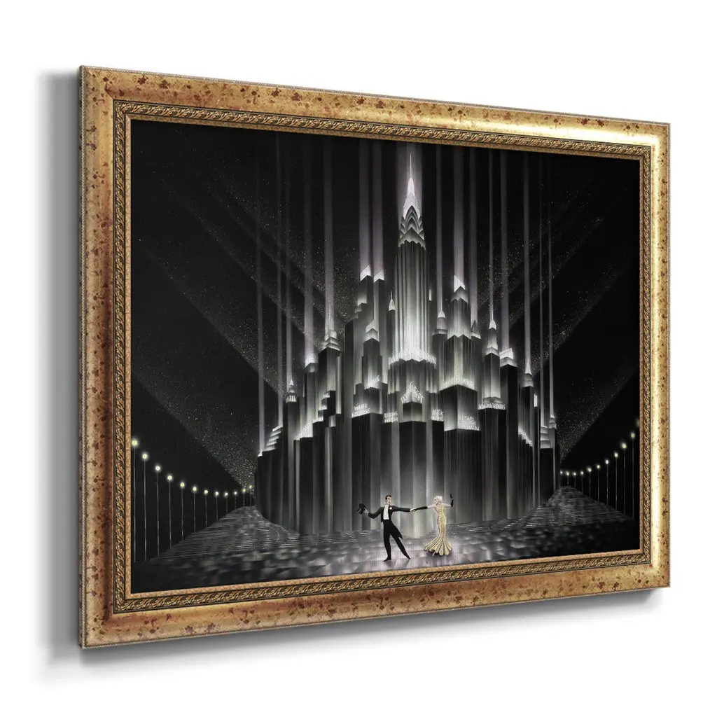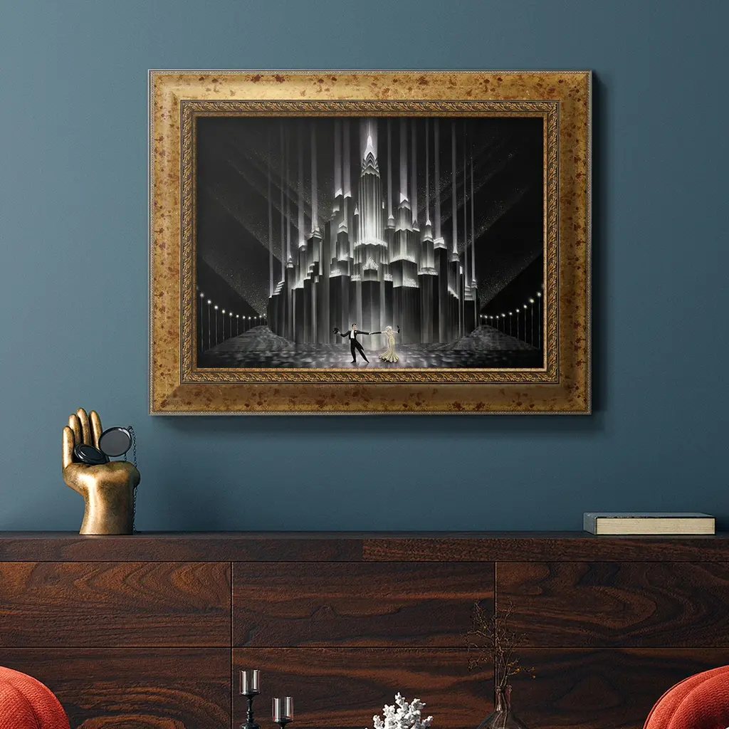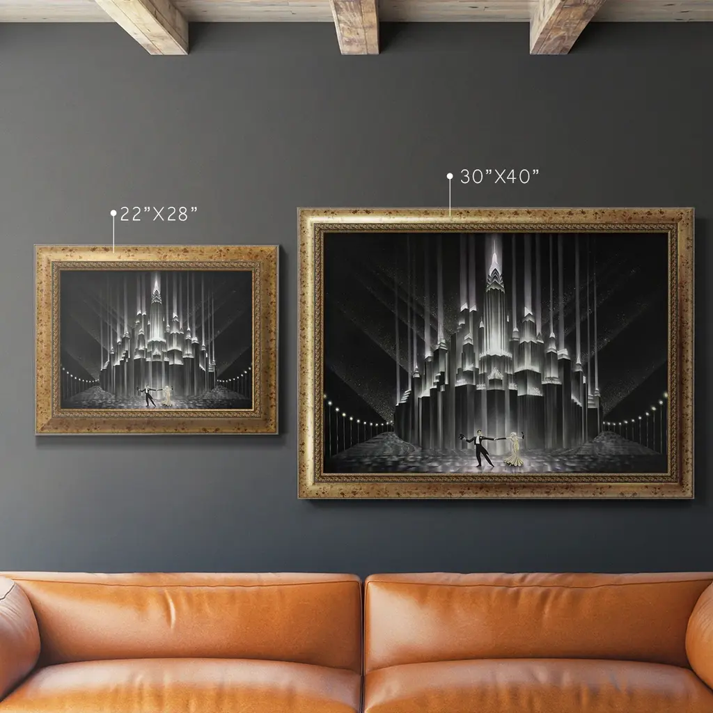 Two for Tonight Premium Framed Canvas- Ready to Hang A Premium Framed Canvas created to last. Framed in distressed wood and available in an array of sizes and colors Featuring a beveled a solid wood stretcher bar, each piece comes ready to hand 3 SIZES AVAILABLE 16''X20'' - Overall Size 18'X27'' - Overall Size 24''x36'' - Overall Size Each piece is made to order. Each piece comes with hanging hardware. Made in the USA Ready to Hang Giclee Paper Print Acrylic Glass Beveled Matt Board