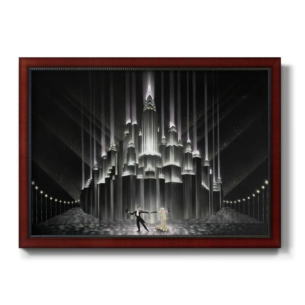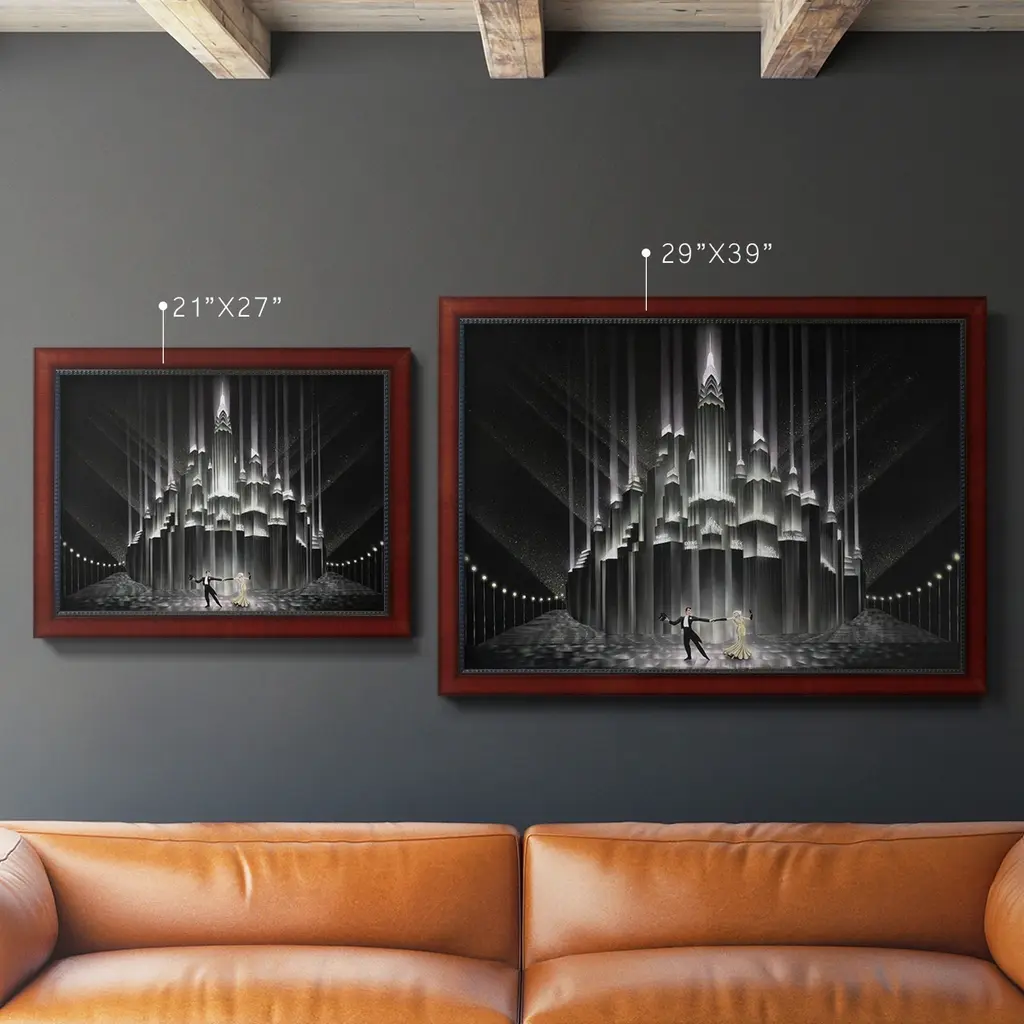 Two for Tonight Premium Framed Canvas- Ready to Hang A Premium Framed Canvas created to last. Framed in distressed wood and available in an array of sizes and colors Featuring a beveled a solid wood stretcher bar, each piece comes ready to hand 3 SIZES AVAILABLE 16''X20'' - Overall Size 18'X27'' - Overall Size 24''x36'' - Overall Size Each piece is made to order. Each piece comes with hanging hardware. Made in the USA Ready to Hang Giclee Paper Print Acrylic Glass Beveled Matt Board