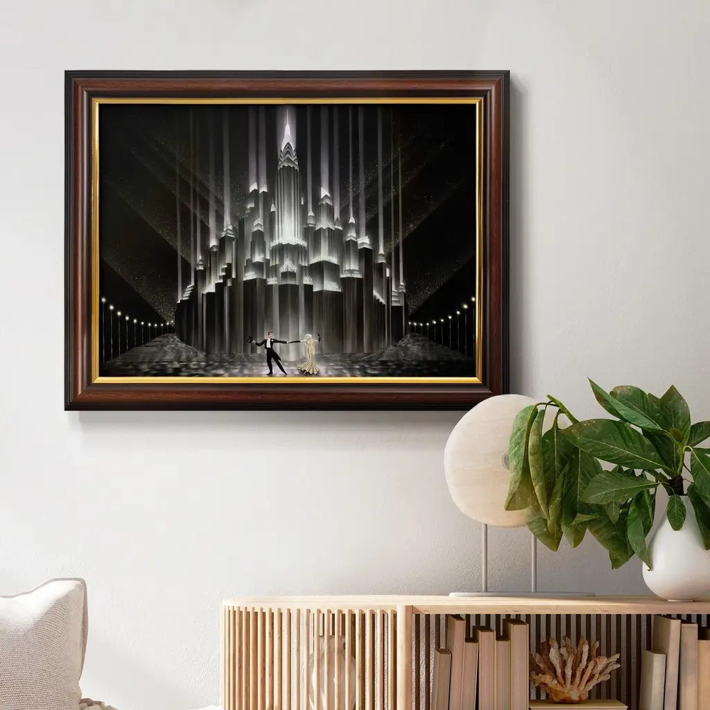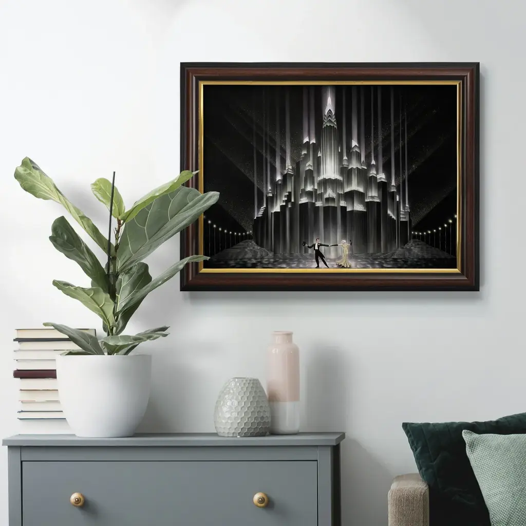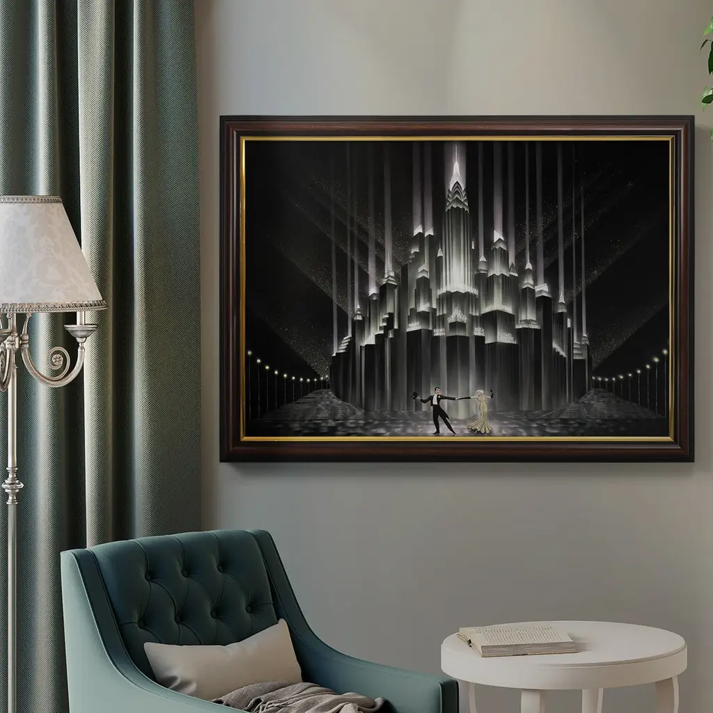 Two for Tonight Premium Framed Canvas- Ready to Hang A Premium Framed Canvas created to last. Framed in distressed wood and available in an array of sizes and colors Featuring a beveled a solid wood stretcher bar, each piece comes ready to hand 3 SIZES AVAILABLE 16''X20'' - Overall Size 18'X27'' - Overall Size 24''x36'' - Overall Size Each piece is made to order. Each piece comes with hanging hardware. Made in the USA Ready to Hang Giclee Paper Print Acrylic Glass Beveled Matt Board
