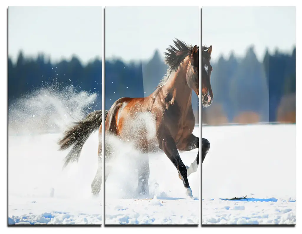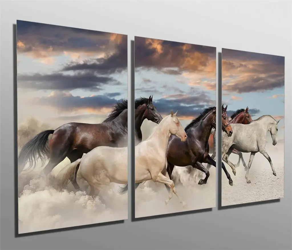 "Two Galloping White Ponies" Photo Metal Wall Art, 3 Panels, 36"x28"