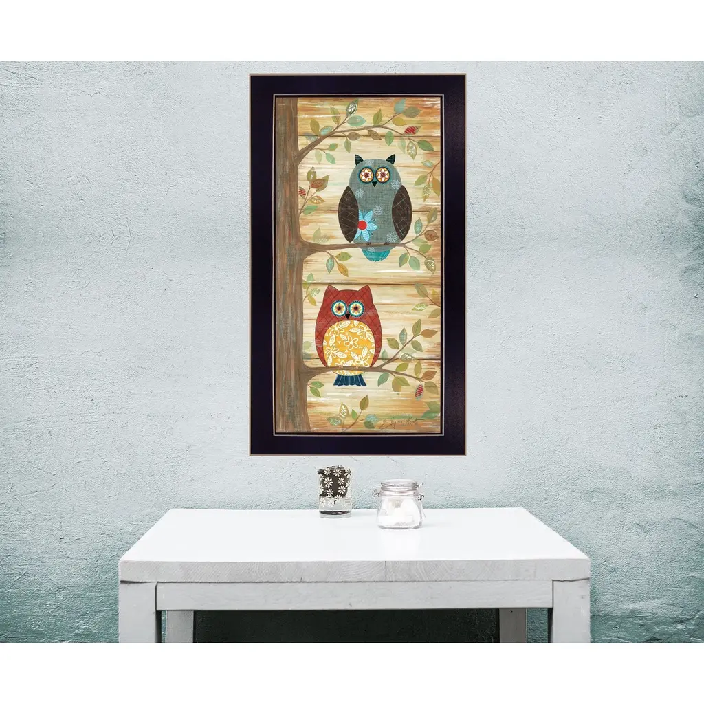 Add an air of fashion to your room and rejuvenate the space with this two wise owls black framed print wall art. Update your walls with this woodland animal decor. This print is a visual artistic expression that allows you to decorate your space in style. Reproduced for you on paper, this hanging decorative accent will be a trendy and fashionable way to dress your walls. Hang on your wall to add some up to date fashion and decoration. Utilize this opportunity to create a focal point in the room with this fabulous wall decor option. 11" H x 20" W x 1" D