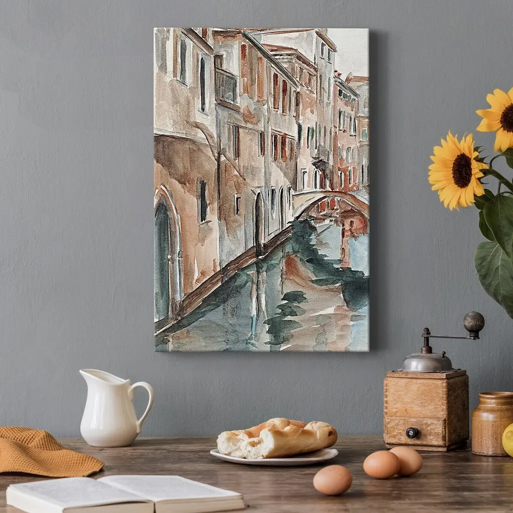 UA CH Venetian Watercolor Study II Premium Gallery Wrapped Canvas - Ready to Hang A premium hand stretched gallery wrapped canvas print created to last. Featuring a beveled a solid wood stretcher bar, each piece comes ready to hand 5 SIZES AVAILABLE 8''X12'' - Overall Size 16'X20'' - Overall Size 24''x32'' - Overall Size 30''x40'' - Overall Size 36''x48'' - Overall Size Each piece is made to order. Built to Last Each piece comes ready to hang Solid wood stretcher Fade and Water resistant Made domestically
