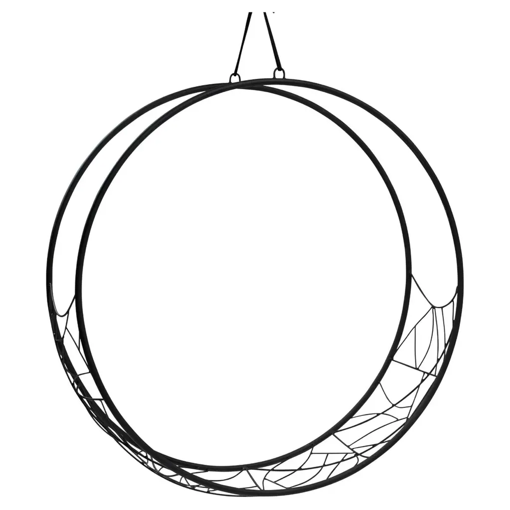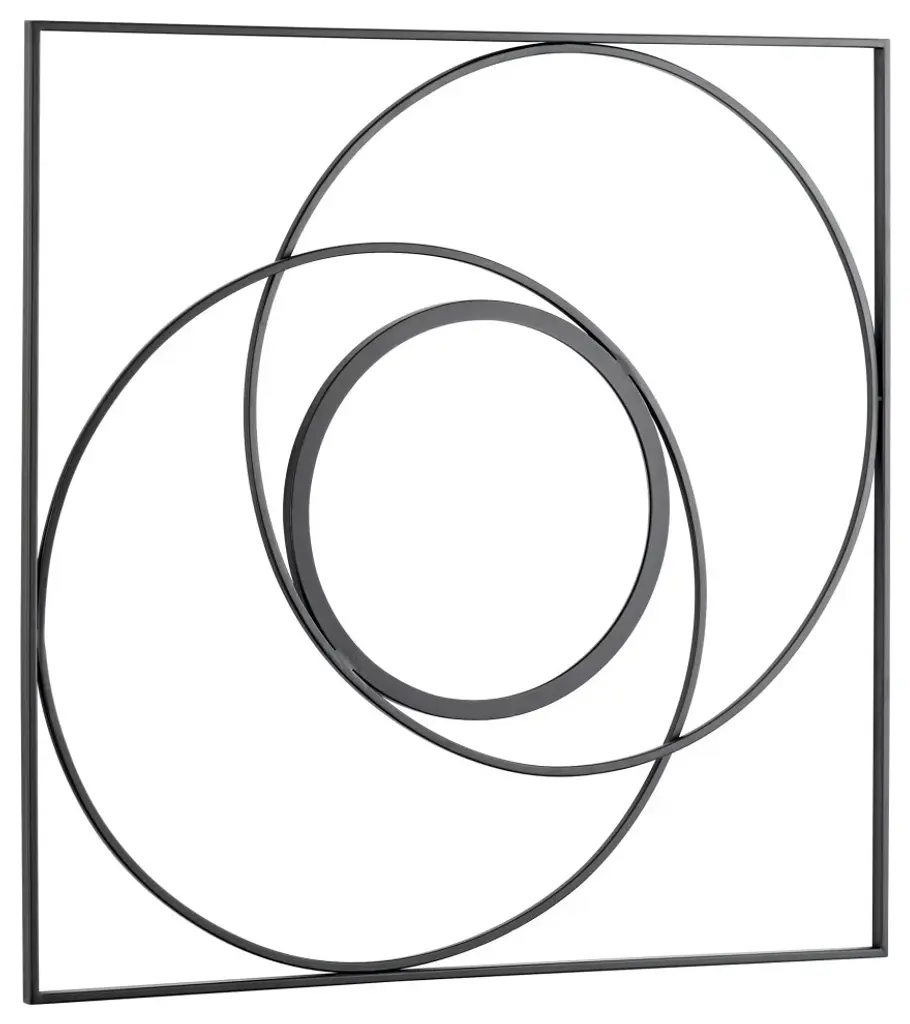 Fusing function and fashion, this geometric accent mirror offers a useful reflection while providing a head-turning focal point for any ensemble. The frames graphite finish sports to overlapping circles enclosed within a rectangular frame. The reflective glass mirror is nestled in the center within another loop. The iron design is formed into a scaled-up wall accent that will provide your entryway, living room, or bedroom designs some statement-making appeal.