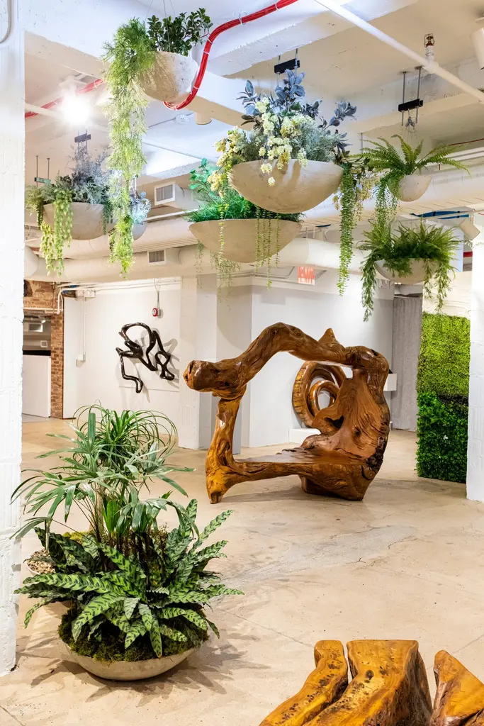 Opiary is a Brooklyn-based biophilic design and production studio. We integrate nature in each of our designs, incorporating live greenery and organic shapes into bespoke furniture, planters, and sculpture. Through the ethos of biophilia, our work reflects the shifting, yet timeless relationship between humans and nature.Ukiyo saucers are modern, lightweight concrete planters that provide ample room for green design. They can be suspended elegantly above the floor or balanced at ground level as islands of indoor nature. DETAILSExterior measures: D11.5”, H5.5” (approximately).Interior measures: D11", H5” (approximately).Indoor/outdoor use and extremely weather-resistant.Option of either rope or aircraft wire hangings. 36” drop. FINISHESAvailable in earth, white, light grey, grey, dark grey, and black GFRC Pricing varies based on finish. Please message before purchasingPrice listed is for our standard light grey option, pictured hereAll Opiary pieces are handcrafted and made-to-order art pieces. Dimensions/finishes are approximations, and these will not be perfectly round. Clients are welcome to visit our Brooklyn studio during the fabrication of pieces.MODIFICATIONSCustom sizes available upon request.Live or silk plants (with foam insert) included for an additional cost.Length of drop can be adjusted.