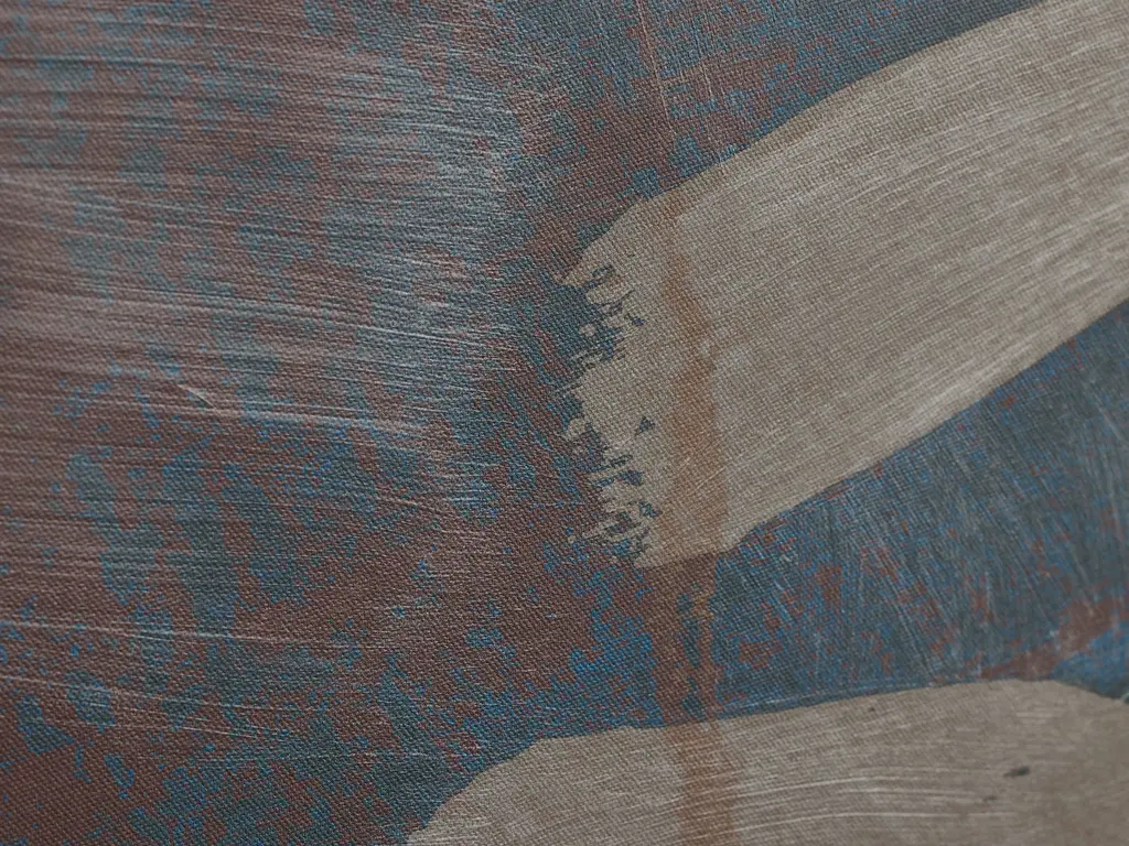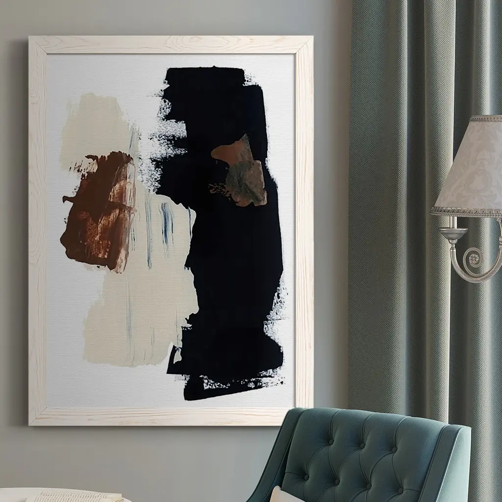 Dynamic shapes in deep neutrals mingle to create this abstract statement piece, a reproduction giclee print on canvas with hand-applied gel details. Gallery wrapped giclee print on canvas with hand-applied acrylic gel details. Features a walnut wood frame. Hangs vertically or horizontally from back-mounted D-rings.