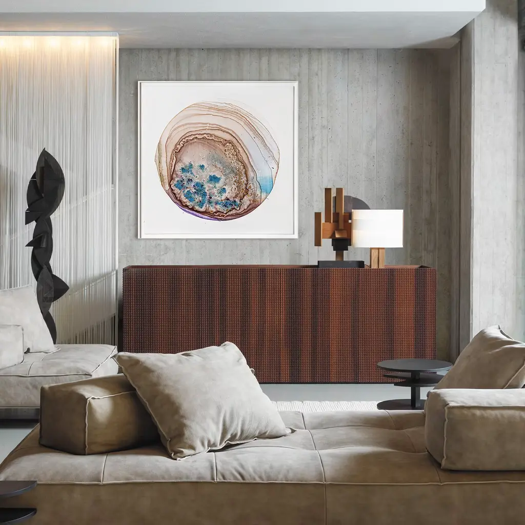 Made in 2020 by Ilaria Franza as part of an exclusive series of paintings, this magnificent artwork symbolizes the inescapable passage of time and events, which can go beyond human agency. A mixed media on canvas, it boasts a mesmerizing array of hues obtained by adding and removing liquid paint from the canvas, letting it merge naturally. This is a limited edition. Frame not included. Delivered with of certificate of authenticity.