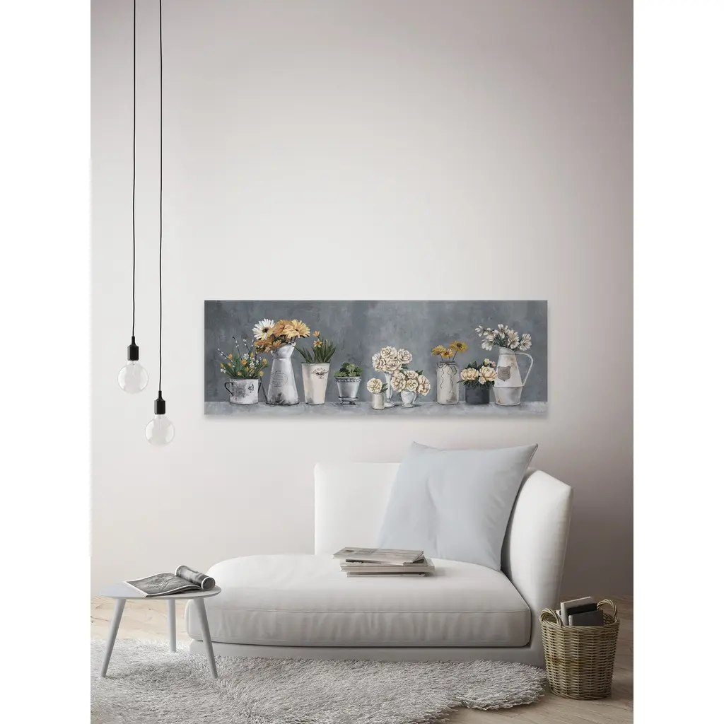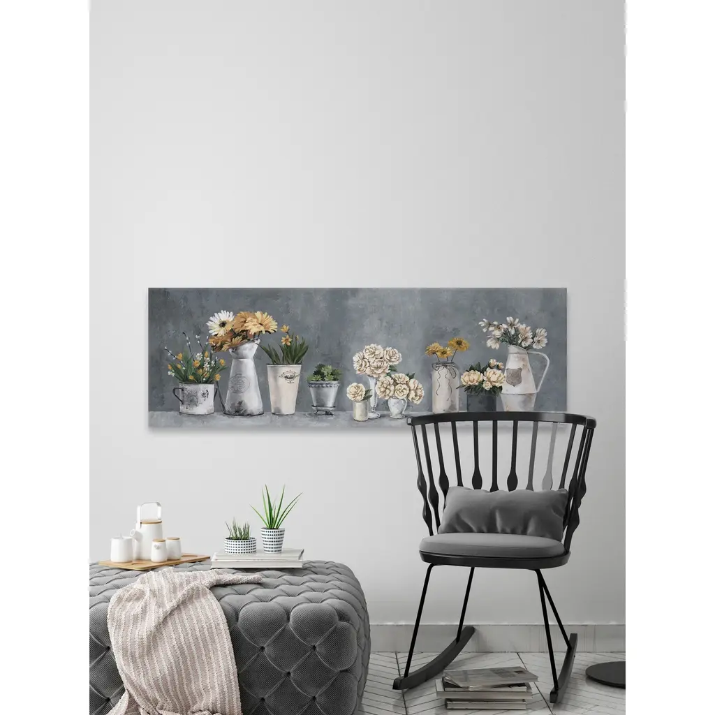 Rusted and worn watering cans and milk jugs make perfect homes for colorful peach and white flowers in this colorful and quaint print of a rustic and homey collection of flowers to decorate your home with. Proudly made in the USA, this piece is printed on canvas before it's stretched over non-warping wooden bars for a gallery-wrapped look. With wall-mounting hooks included, this artful accent is ready to hang up as soon as it reaches your front door. • Fine art canvas print from the Marmont Hill Art Collective • Professionally hand stretched • Gallery wrapped in sustainable, non-warping wood • Arrives ready to hang • Made in the USA • Includes a certificate of authenticity