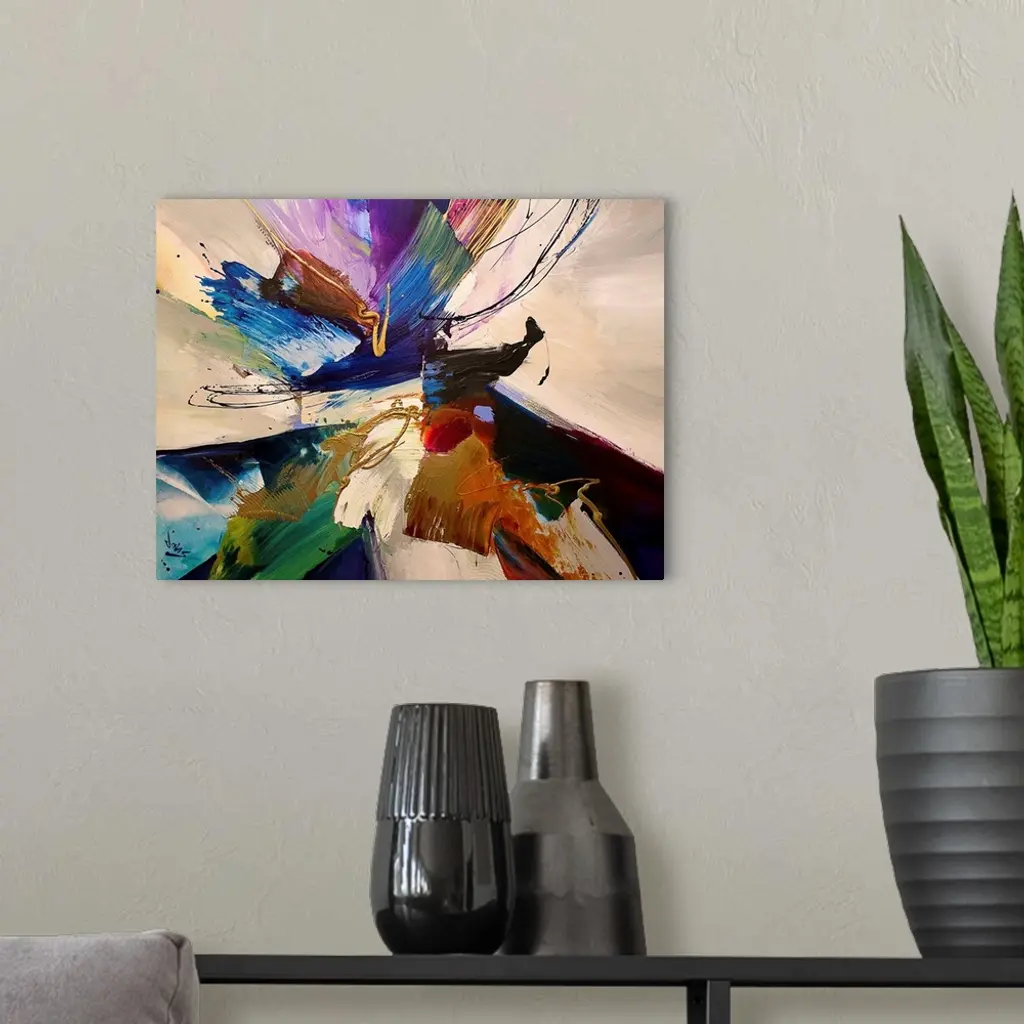 Contemporary abstract painting using a convergence of textures and tones spanning the gamut of color.