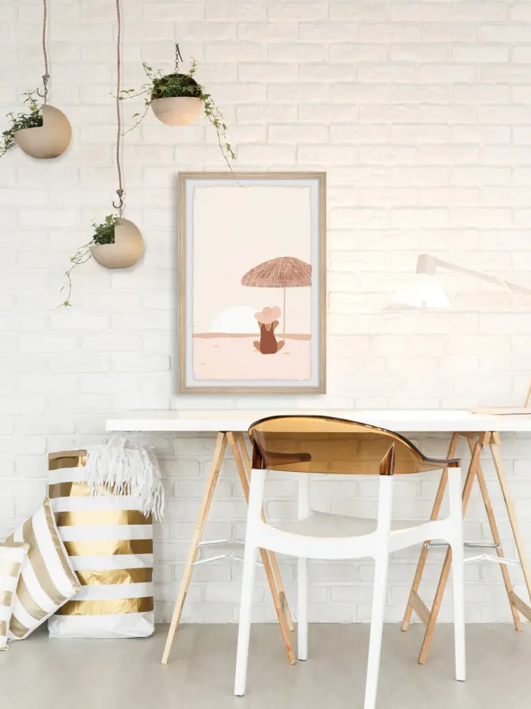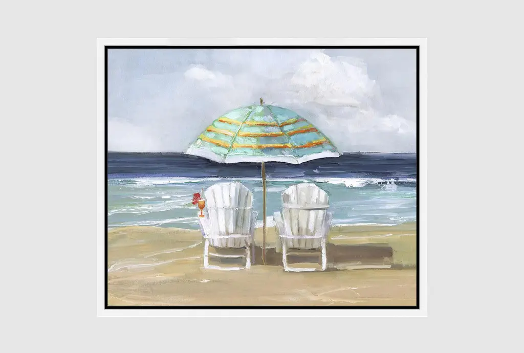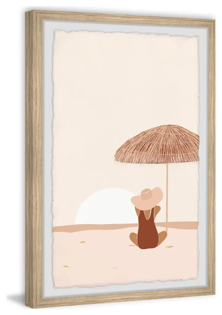 Eye-catching and serene all at once, this drawing print depicts a calming scene of a lady lounging on the sand underneath an umbrella at sunset. Proudly printed in the USA, this piece is printed on high quality archive paper and professionally hand-framed. With wall-mounting hooks included, this artful accent is ready to hang up as soon as it reaches your front door.- Top quality Giclee print on high resolution Archive Paper- Hand cut deckled edges- High quality durable non-warping frame- Finished under shatter resistant plexiglass- Arrives ready to hang- Includes a certificate of authenticity- Printed in the USA