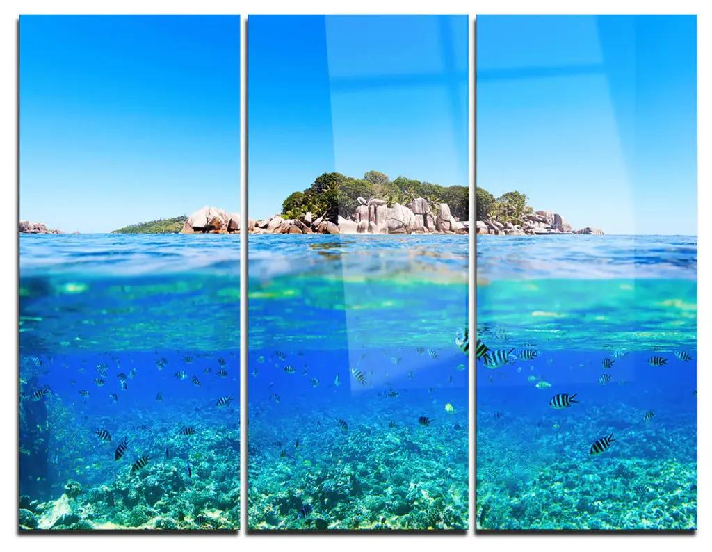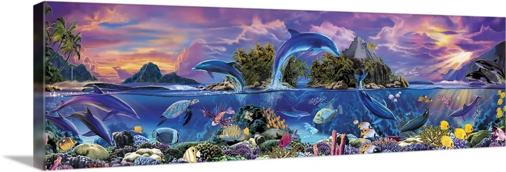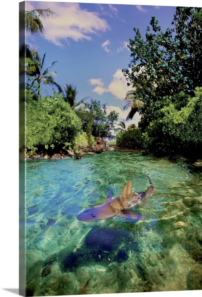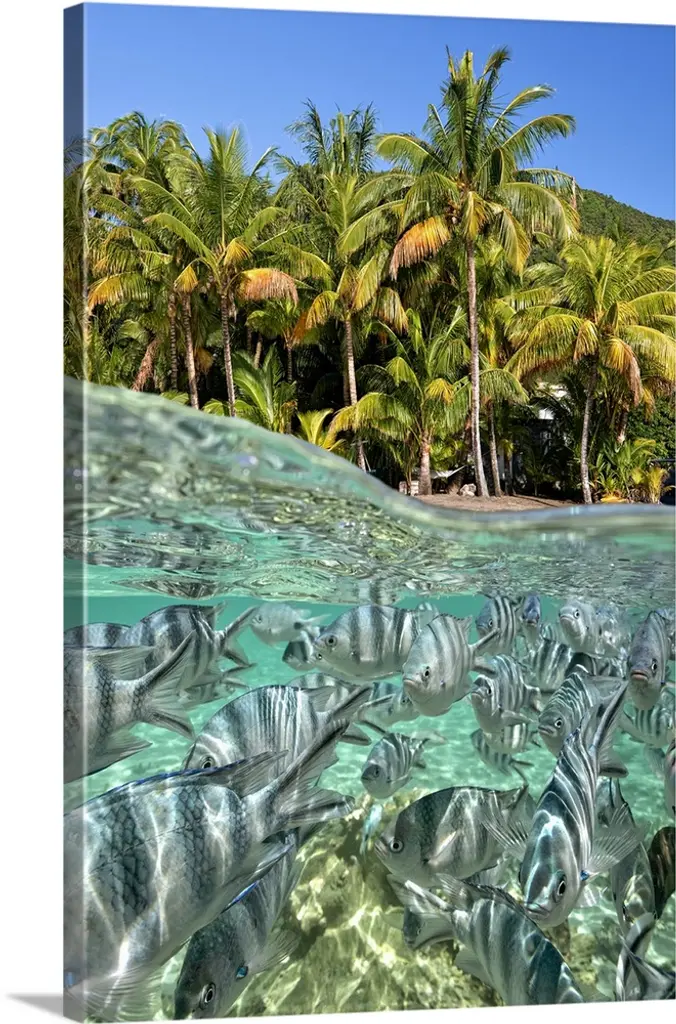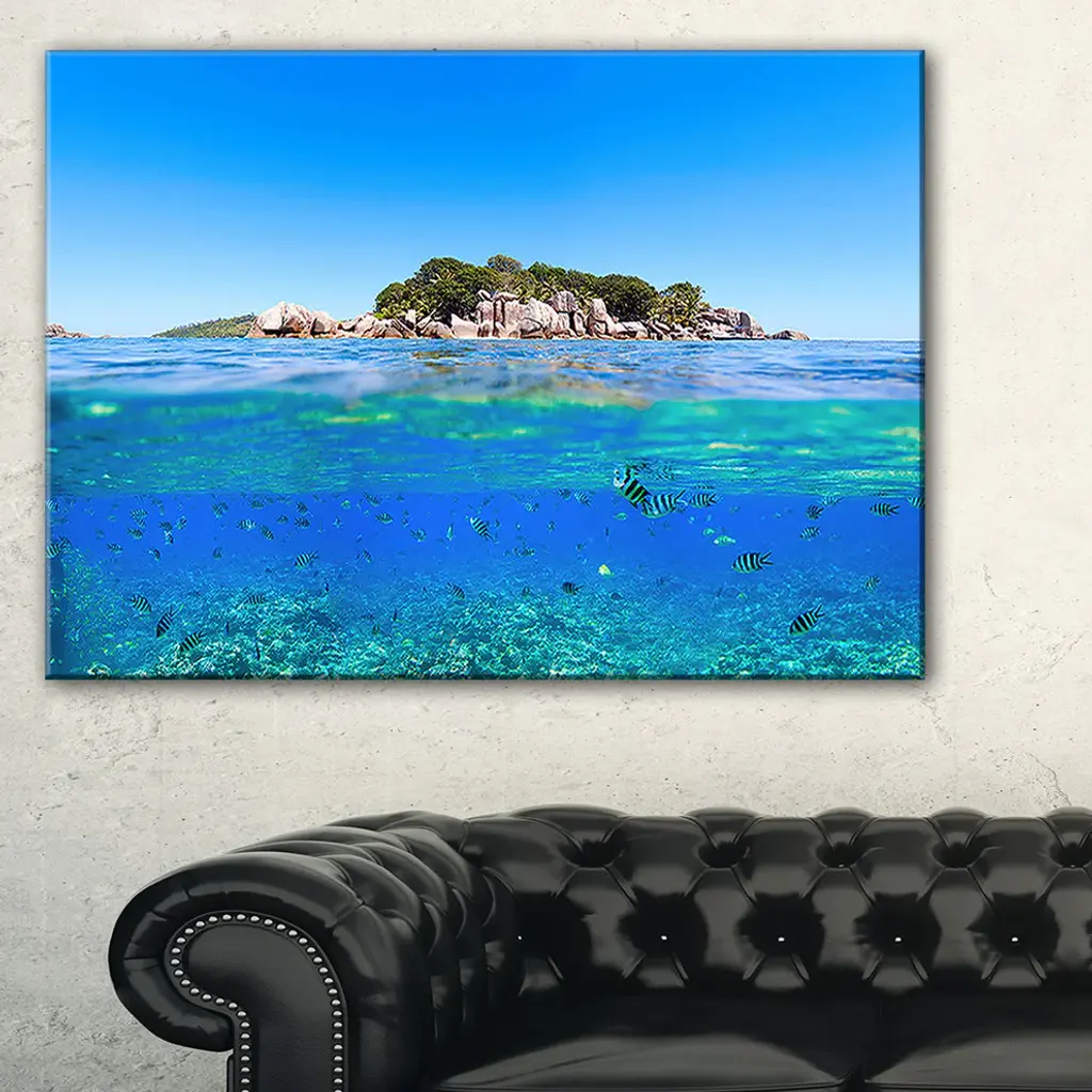 The Under and Above the Waters canvas art print is sure to make an impression on anyone who sees it. This artwork is gallery wrapped around a 1-inch solid wood frame and arrives carefully packaged and entirely ready to hang on the wall. Design Art only uses the highest resolution and pigments to ensure a crisp colorful print that is never faded or pixelated. This artwork is sure to be a conversation starter in any home or office.
