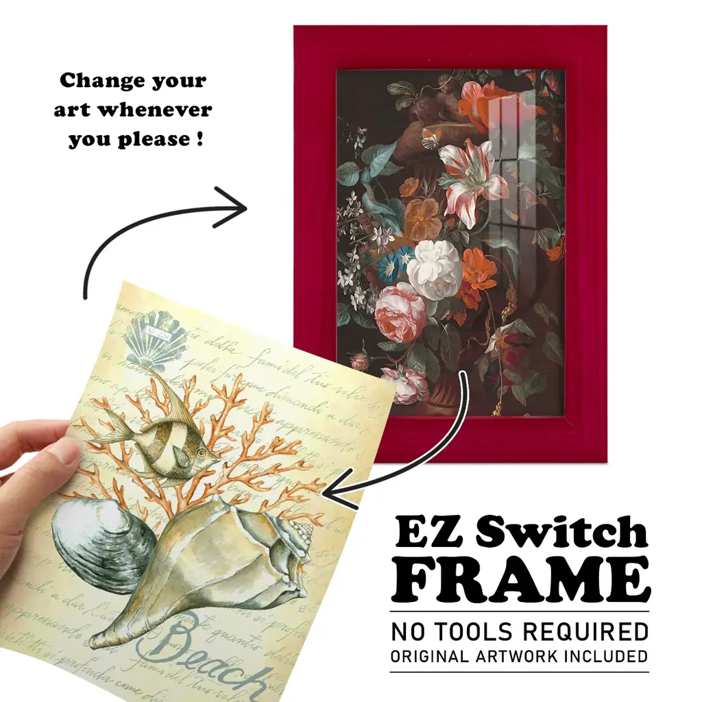 Under The Sea II -EZ SWITCH Framed Print w/glass-Cherry Red A delightful, framed print. Featuring a solid wood frame with real wood glass. This premium print is giclee quality. In addition, every frame features a removable back and table top stand. This allows you to change your art in the future or to just stand the art on a table for a new look. We are sure you'll enjoy our new series of EZ SWITCH Framed Art. Solid Wood Frame Real Glass Removable / Replaceable Art Built in Tabletop Stand Sizes range from 4x6 up to 12x15 - buy just one or pair them up as sets as you see fit.