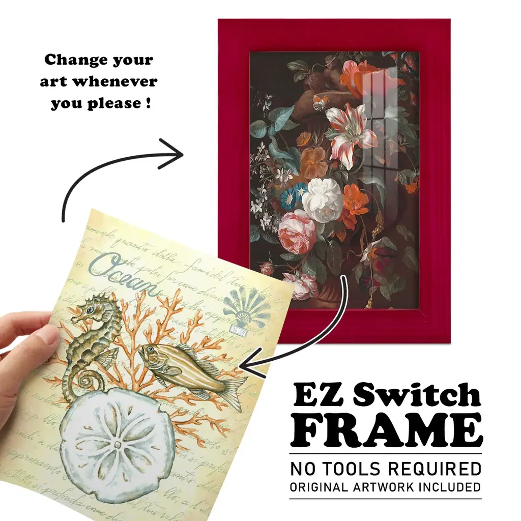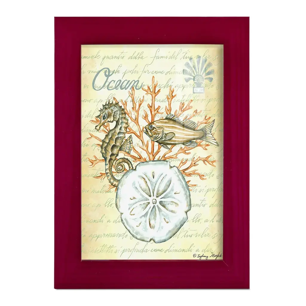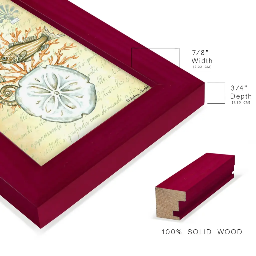 Under The Sea III -EZ SWITCH Framed Print w/glass-Cherry Red A delightful, framed print. Featuring a solid wood frame with real wood glass. This premium print is giclee quality. In addition, every frame features a removable back and table top stand. This allows you to change your art in the future or to just stand the art on a table for a new look. We are sure you'll enjoy our new series of EZ SWITCH Framed Art. Solid Wood Frame Real Glass Removable / Replaceable Art Built in Tabletop Stand Sizes range from 4x6 up to 12x15 - buy just one or pair them up as sets as you see fit.