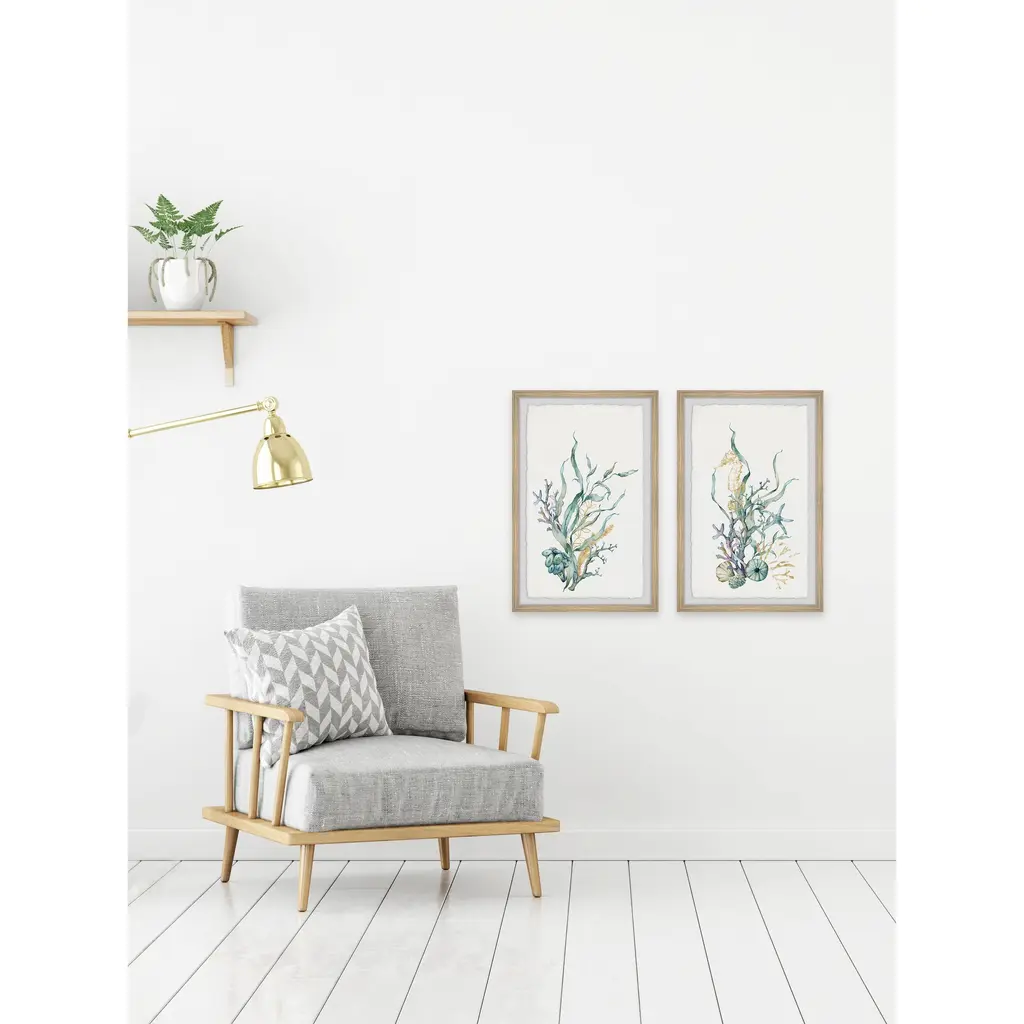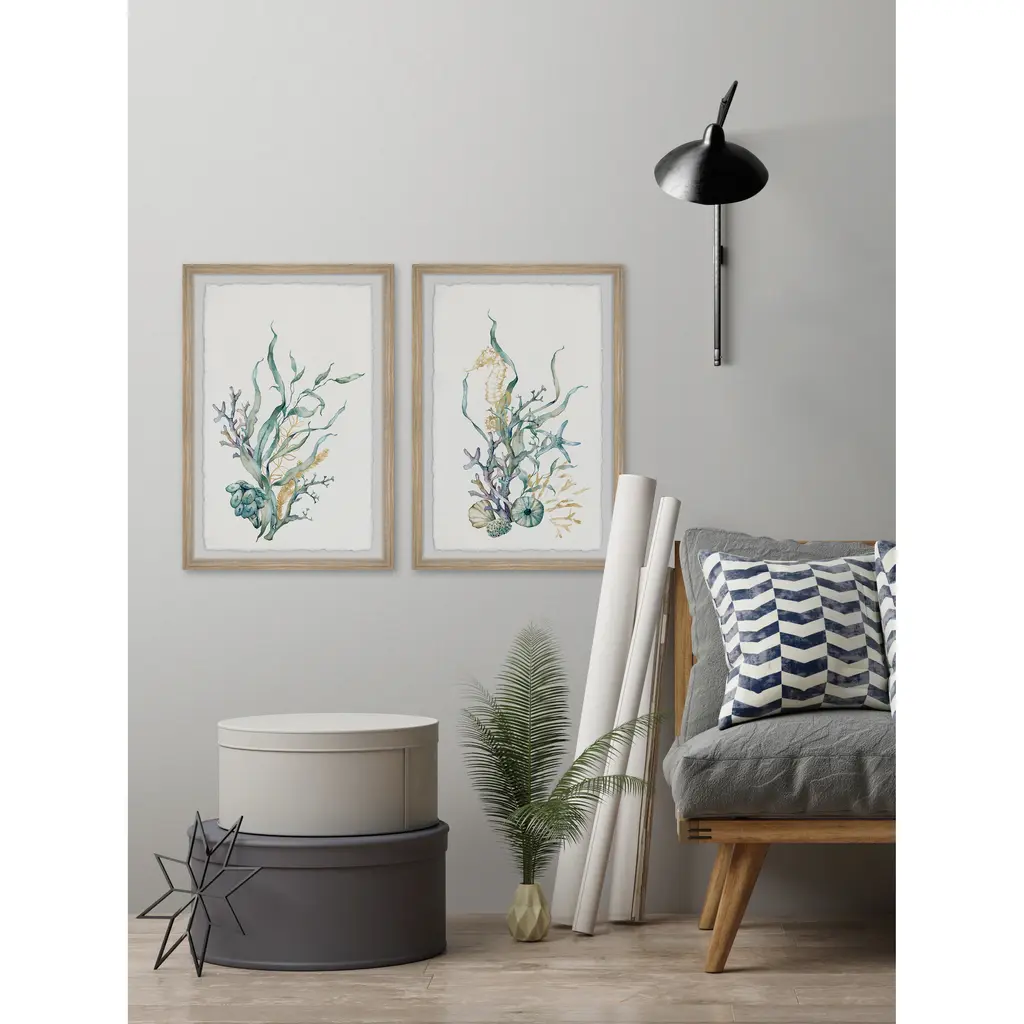 Bring oceanic patterns and a more nautical theme to your space with these two watercolor painting prints that feature coral and shells. Proudly printed in the USA, this piece is printed on high quality archive paper and professionally hand-framed. With wall-mounting hooks included, this artful accent is ready to hang up as soon as it reaches your front door. • Top quality Giclee print on high resolution Archive Paper • Hand cut deckled edges • High quality durable non-warping frame • Finished under shatter resistant plexiglass • Arrives ready to hang • Includes a certificate of authenticity • Printed in the USA