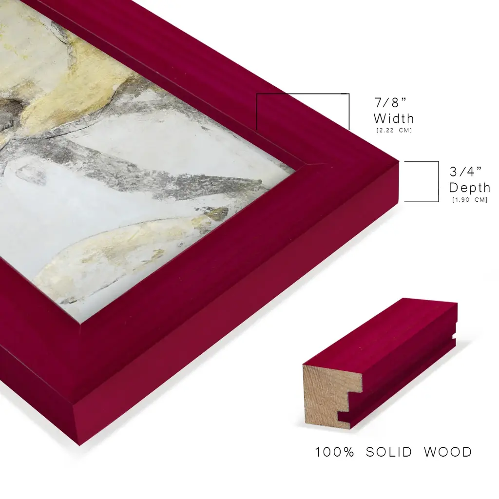 Une Fleur I -EZ SWITCH Framed Print w/glass-Cherry Red A delightful, framed print. Featuring a solid wood frame with real wood glass. This premium print is giclee quality. In addition, every frame features a removable back and table top stand. This allows you to change your art in the future or to just stand the art on a table for a new look. We are sure you'll enjoy our new series of EZ SWITCH Framed Art. Solid Wood Frame Real Glass Removable / Replaceable Art Built in Tabletop Stand Sizes range from 4x6 up to 12x15 - buy just one or pair them up as sets as you see fit.