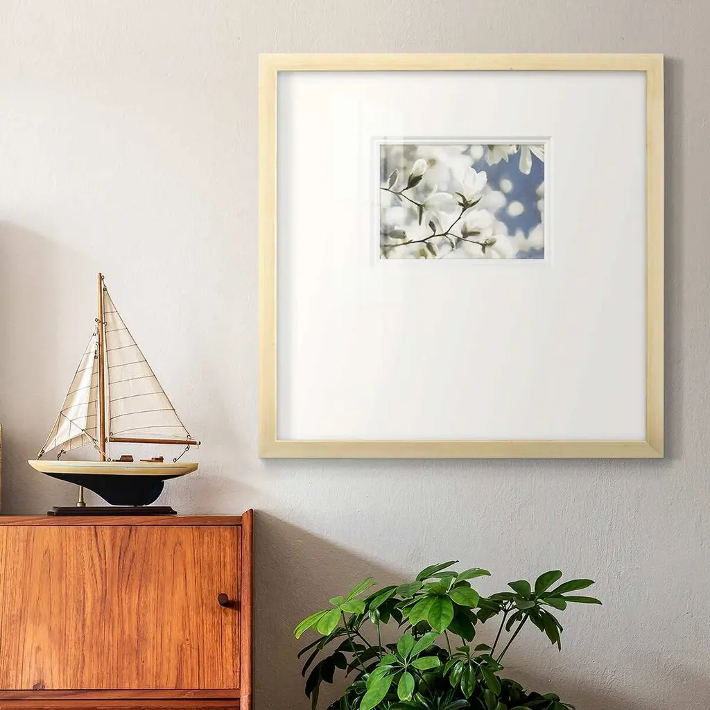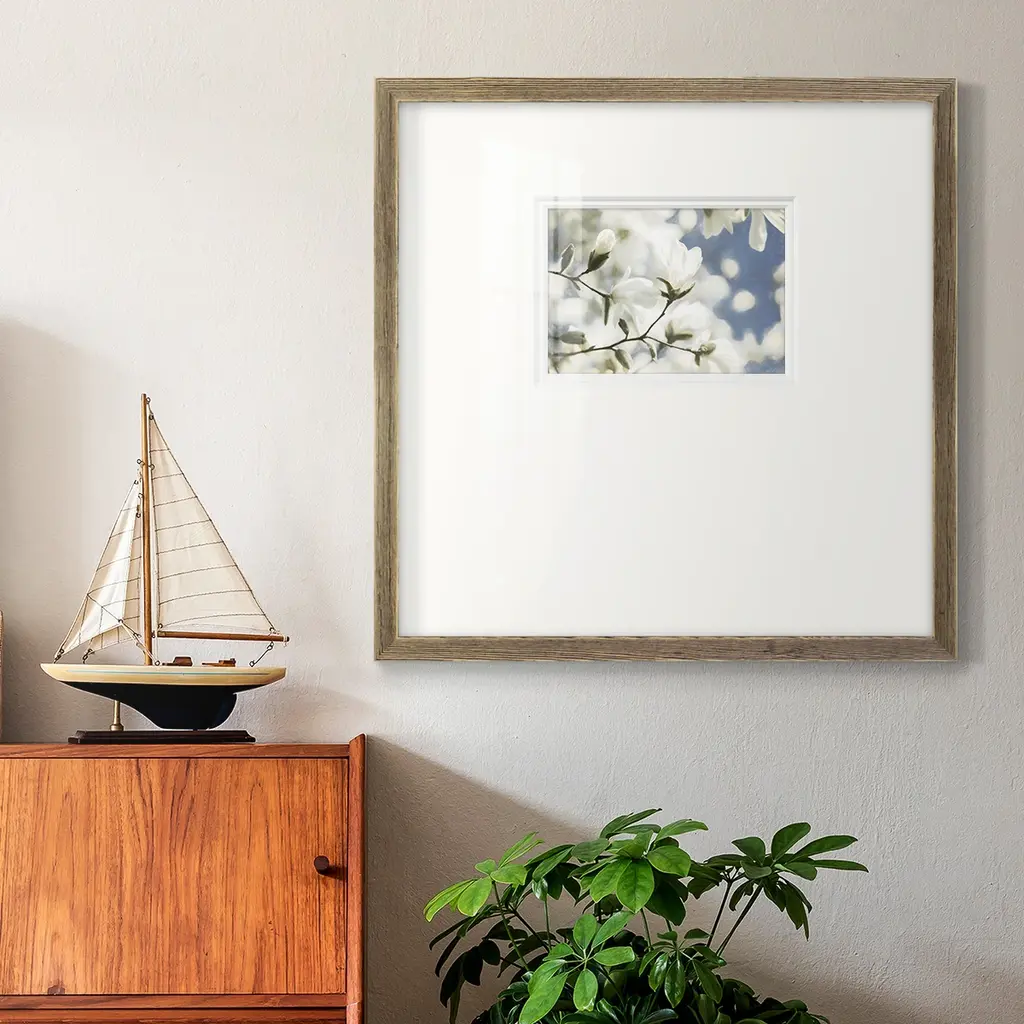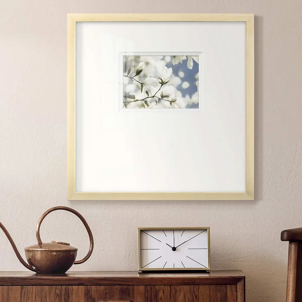 Unfolding BeautyPremium Framed Print A framed cold pressed paper print featuring superior double matting and quality frame. 2 SIZES AVAILABLE 16''X16''' - Overall Size 20''X20''' - Overall Size Each piece is made to order. Each piece comes with hanging hardware. Made in the USA Ready to Hang Giclee Paper Print Plexiglass Beveled Matt Board Double Matte Board
