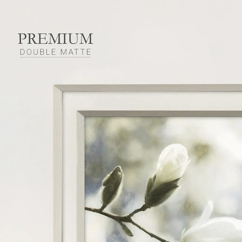 Unfolding BeautyPremium Framed Print A framed cold pressed paper print featuring superior double matting and quality frame. 2 SIZES AVAILABLE 16''X16''' - Overall Size 20''X20''' - Overall Size Each piece is made to order. Each piece comes with hanging hardware. Made in the USA Ready to Hang Giclee Paper Print Plexiglass Beveled Matt Board Double Matte Board