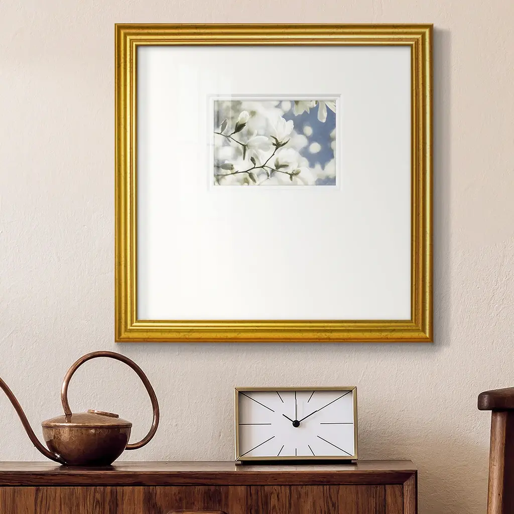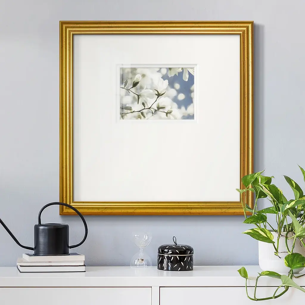 Unfolding BeautyPremium Framed Print A framed cold pressed paper print featuring superior double matting and quality frame. 2 SIZES AVAILABLE 16''X16''' - Overall Size 20''X20''' - Overall Size Each piece is made to order. Each piece comes with hanging hardware. Made in the USA Ready to Hang Giclee Paper Print Plexiglass Beveled Matt Board Double Matte Board