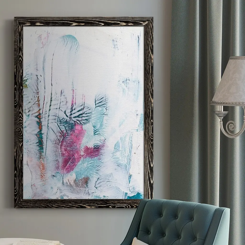 Experience the positive energy of Unfolding No 3 Wall Art from Four Hands, a creation by California artist Patricia Vargas. Her abstract acrylic and digital paintings contrast splashes of color to invite individual interpretation. Printed on premium archival matte paper and float-mounted on canvas in a rustic walnut frame, each work is handmade in Austin, Texas, blending contemporary and nature-inspired styles, embodying an artisanal modern aesthetic to elevate its surroundings.