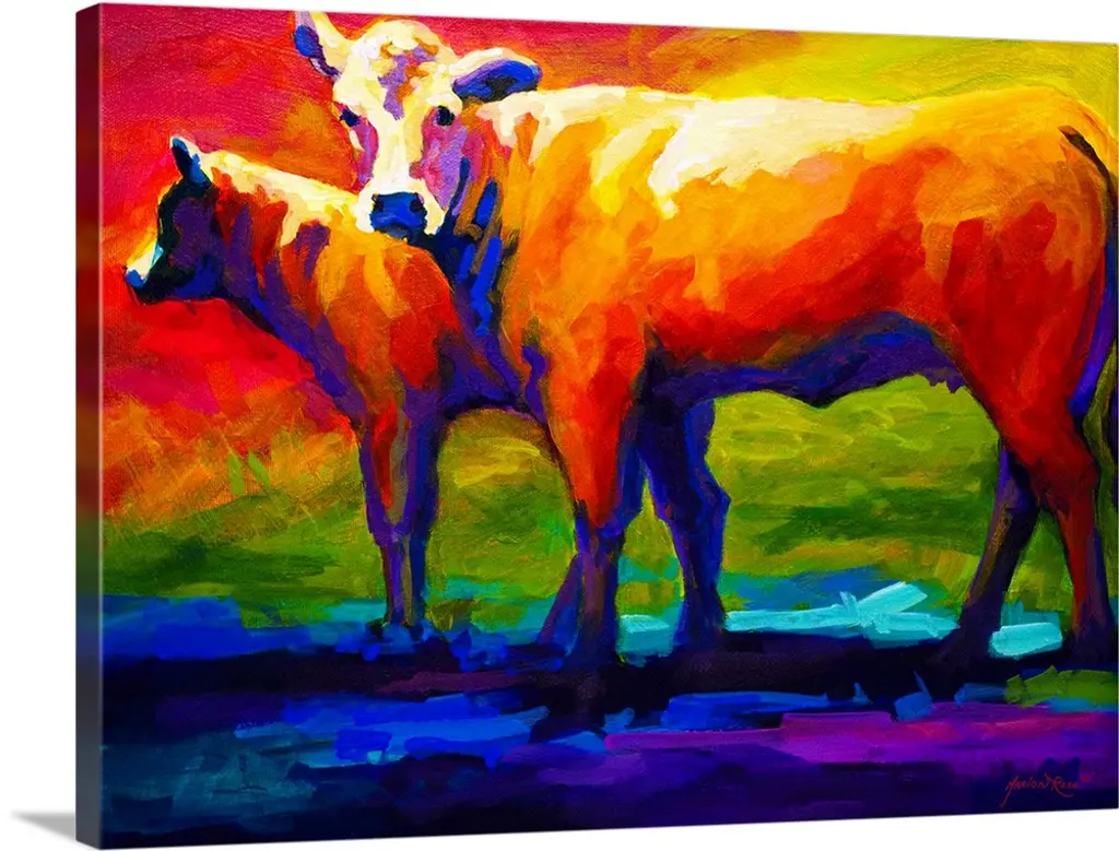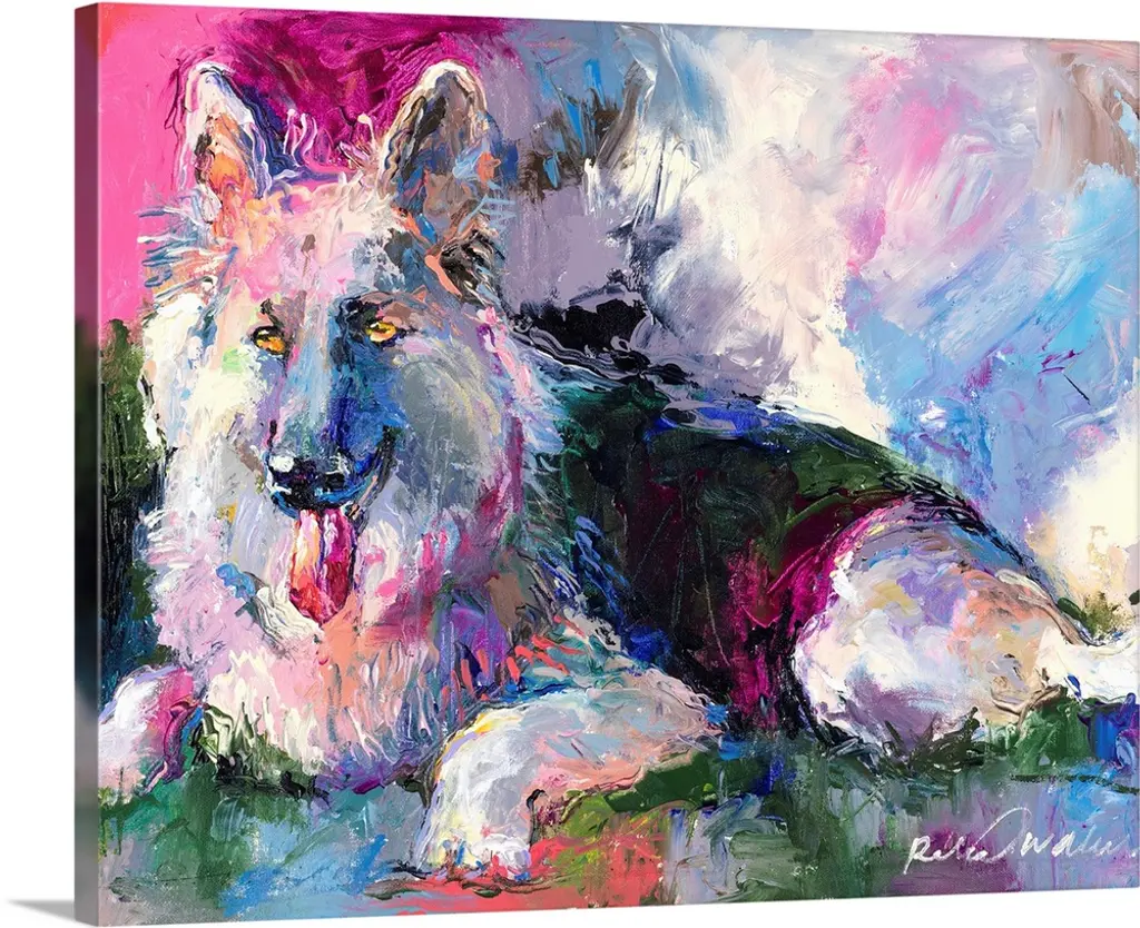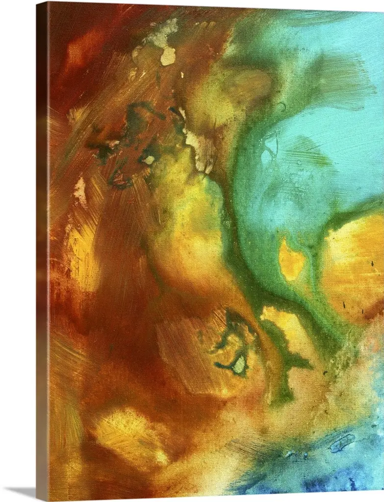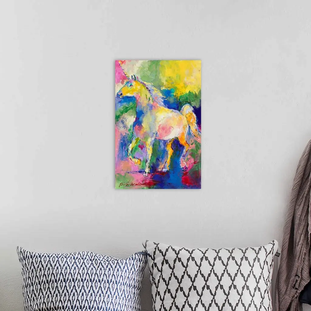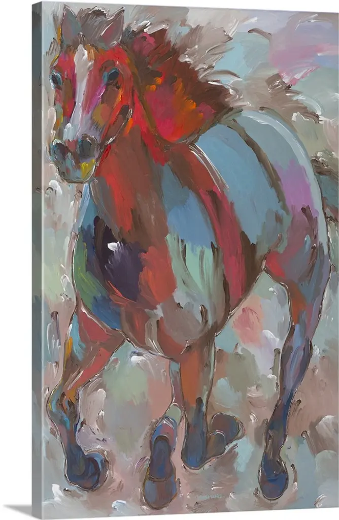 Abstract painting of a colorful unicorn using all of the colors of the rainbow.