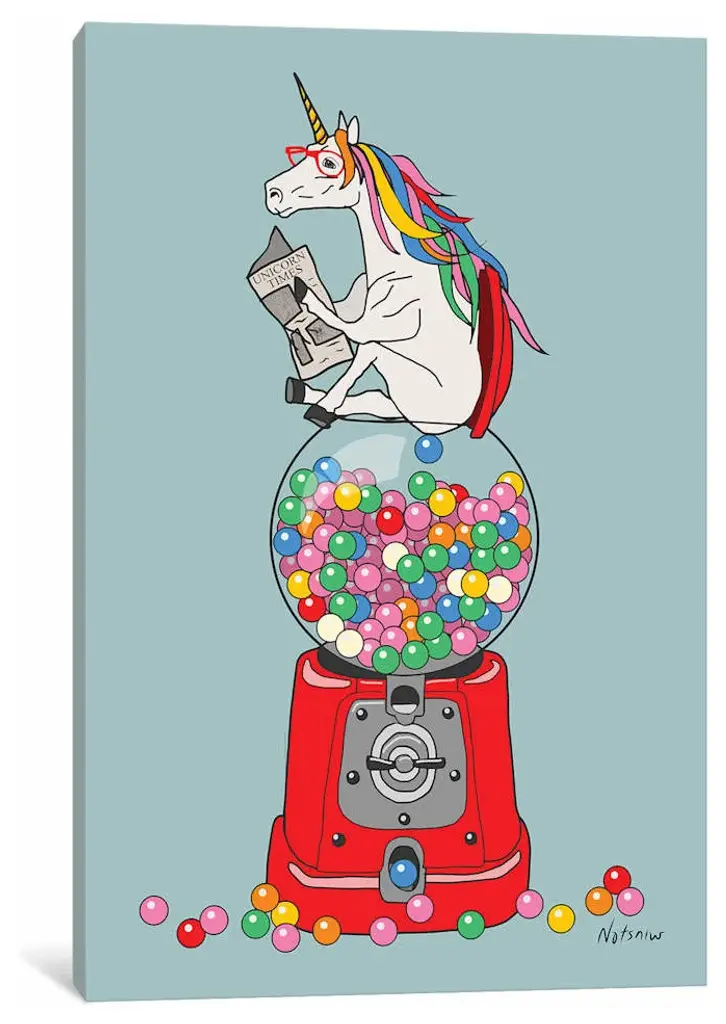 Unicorn Gumball Poop By Notsniw Art Canvas Print, 26"x18"x1.5"
