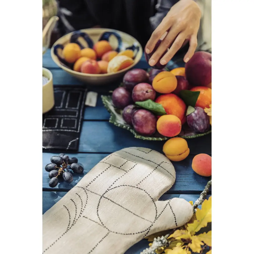The Unien talo pot holder/trivet by Saana ja Olli was inspired by architectonic dreams and old Finnish house-building traditions. Unien talo (”The House of Dreams”) features abstract patterns sketched in clear, subtle lines. All Saana ja Olli products are made from durable 100% hemp fabric and they are suitable for everyday life. The products are transparently manufactured in Finland.
