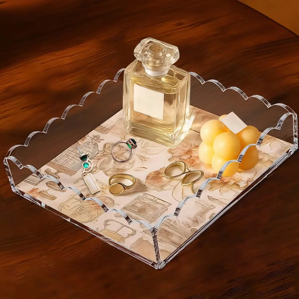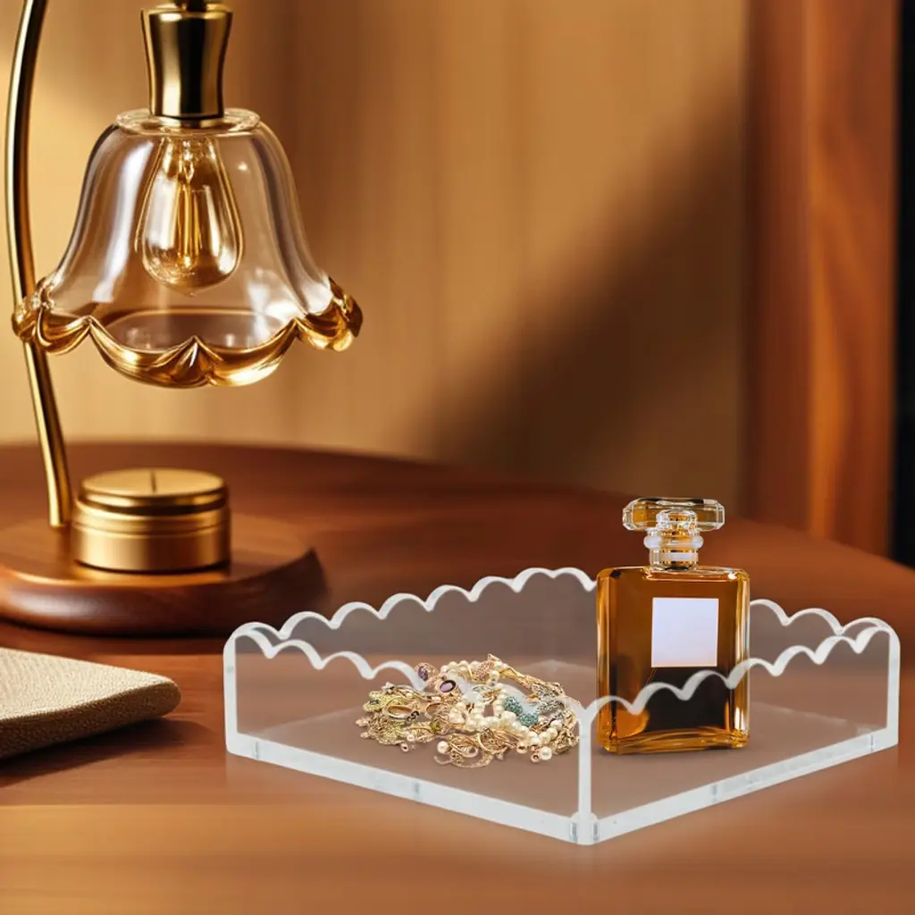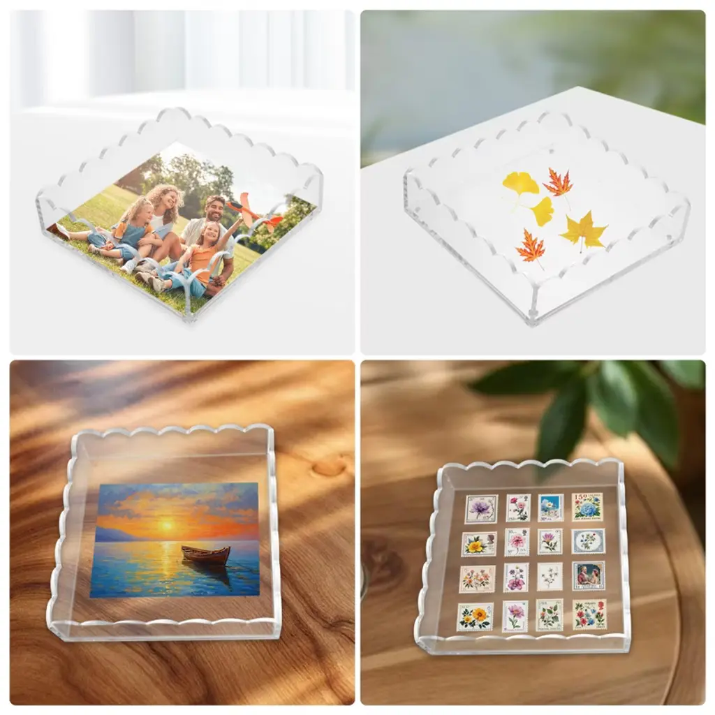 Features:Crafted from durable acrylic, this scalloped acrylic tray boasts an ultra-clear material for a crystal-clear look. The chic petal edge enhances any space with elegance.Invisible magnetic points under the frame secure photos or artwork in place in this magnetic acrylic tray. Effortlessly switch out items to match different decor styles. Smartly designed for easy use.Good for organizing various items like jewelry, cosmetics, keys, phones, and more, these acrylic trays for display are ideal as a bedside tray, dresser organizer, or desk catchall. Fits seamlessly in modern and traditional interiors.An ideal gift for birthdays, weddings, Mother’s Day, and more, this acrylic tray offers elegant design and customizable features that add a personal touch to any space.Includes four anti-slip pads for stability. This clear acrylic tray is a practical and stylish way to celebrate life’s memorable moments.Specifications:Color: ClearMaterial: AcrylicPackage List:1 Pc Magnetic Acrylic Tray