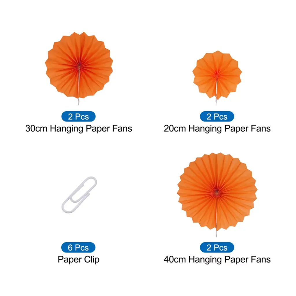 Made of durable paper material, it's built to last. Its beautiful design adds a touch of visual interest to any setting. It can be hung on a wall, tree, ceiling, curtains, door, or table. This hanging paper fan set can be used for home decoration, parties, birthdays, weddings, graduations, store windows, and more. Installation is easy: simply unfold the fan and secure it in place using the provided stickers or clips. Note: Exercise caution when opening or folding the fan, and avoid applying excessive force.