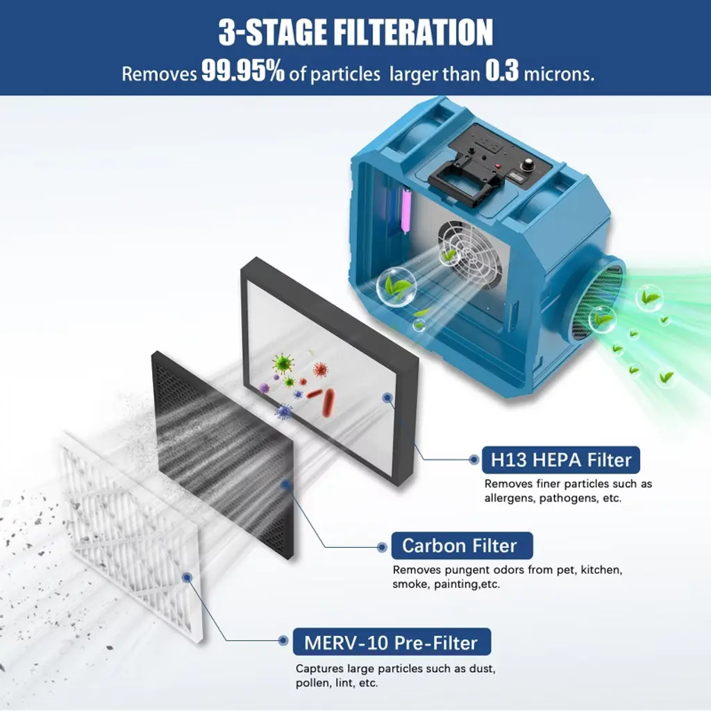 Unisoar 800cfm Hepa Air Scrubber With 3-stage Filtration For Heavy Duty, Green