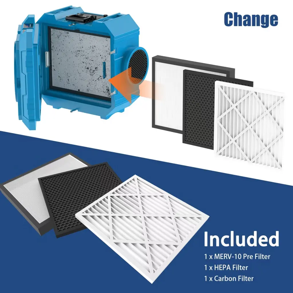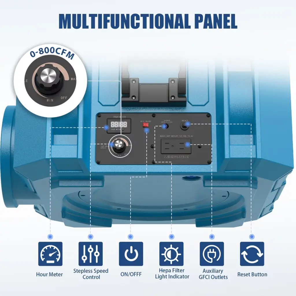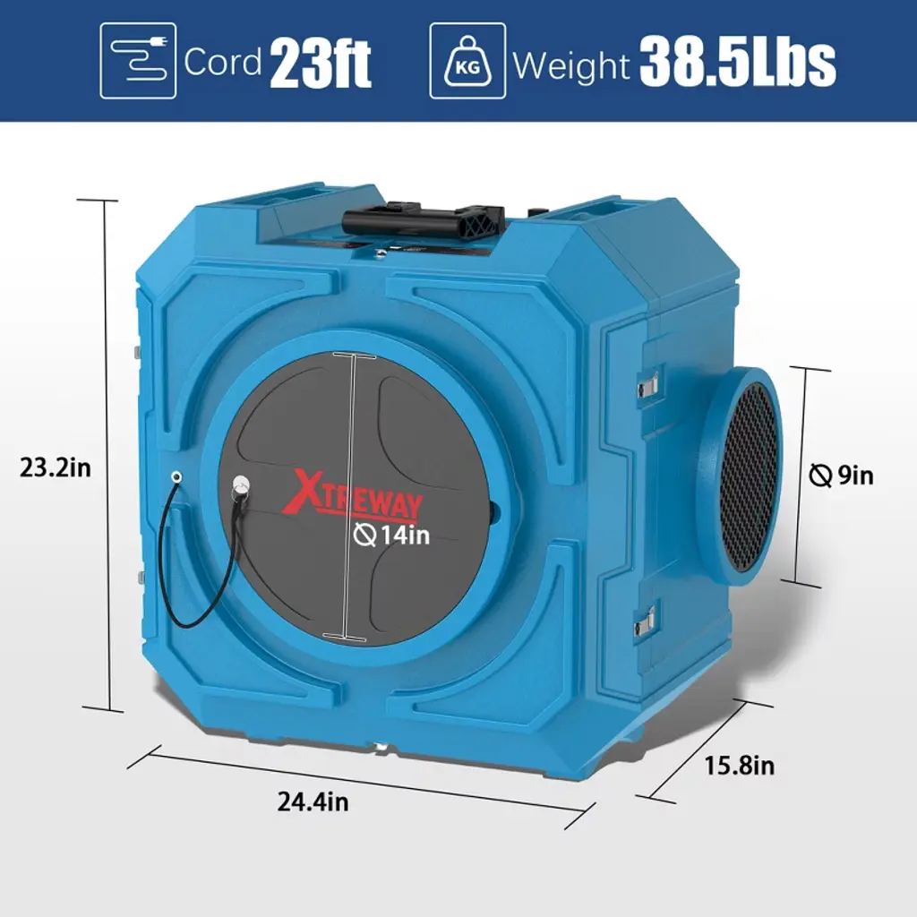 Air Scubber X800 can be used in commercial and industrial applications for painting, remodeling, sewage treatment, remediation, fire damage repair, and water damage repair. A must for long term work in dusty environments!