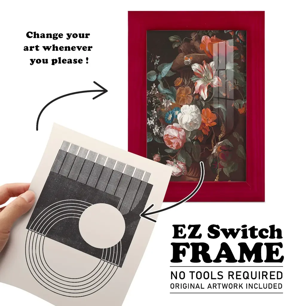 Unknown Space III -EZ SWITCH Framed Print w/glass-Cherry Red A delightful, framed print. Featuring a solid wood frame with real wood glass. This premium print is giclee quality. In addition, every frame features a removable back and table top stand. This allows you to change your art in the future or to just stand the art on a table for a new look. We are sure you'll enjoy our new series of EZ SWITCH Framed Art. Solid Wood Frame Real Glass Removable / Replaceable Art Built in Tabletop Stand Sizes range from 4x6 up to 12x15 - buy just one or pair them up as sets as you see fit.